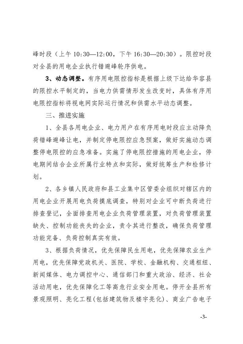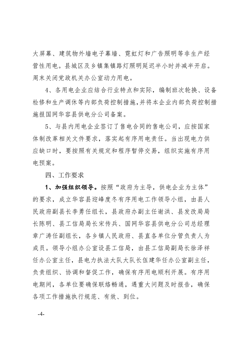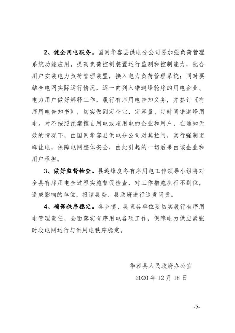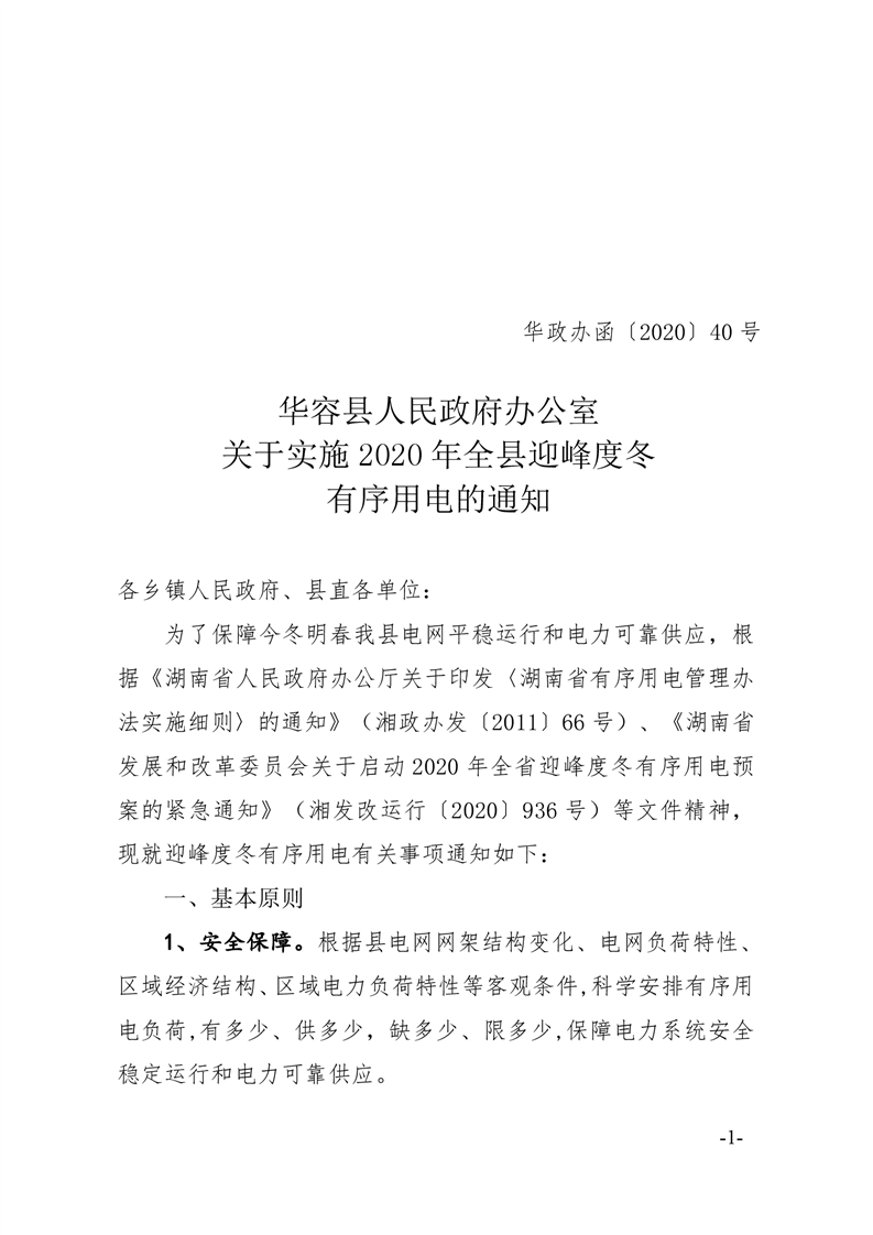 华容县人民政府办公室关于实施2020年全县迎峰度冬有序用电的通知