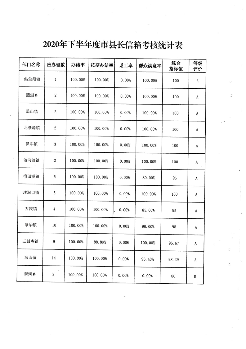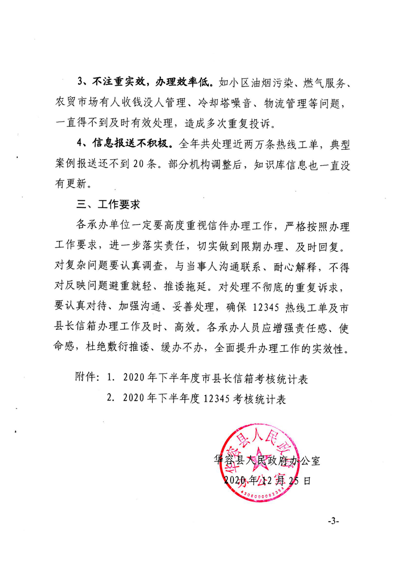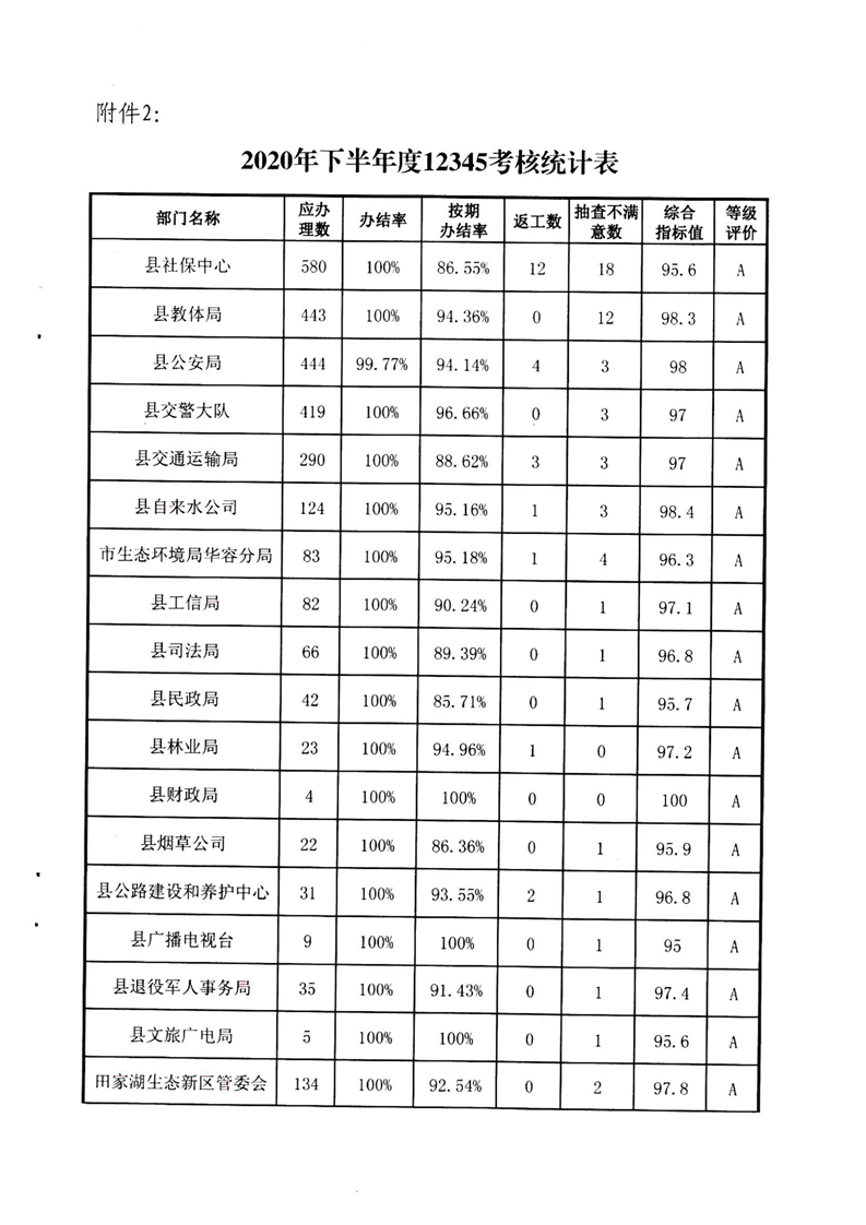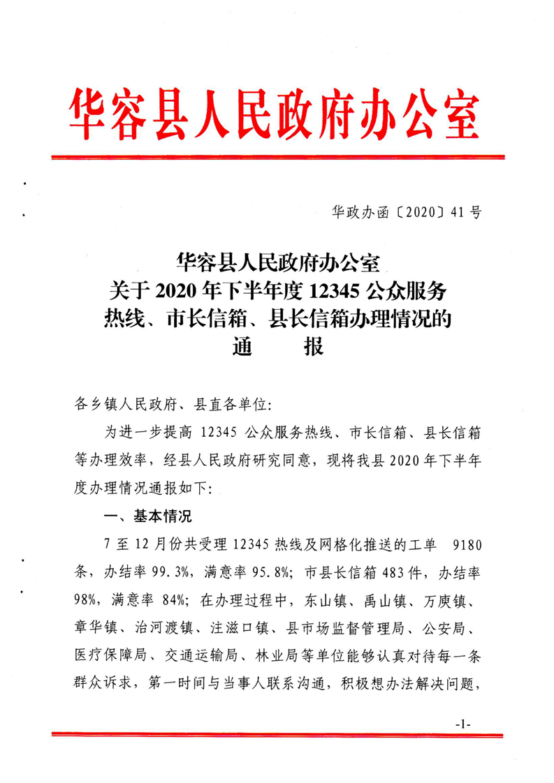 华容县人民政府办公室关于2020年下半年度“12345”公众服务热线、市长信箱、县长信箱办理情况的通报