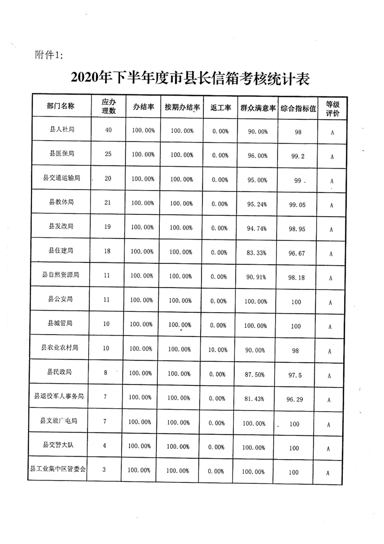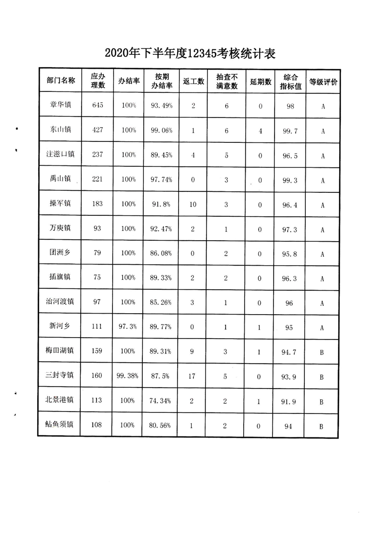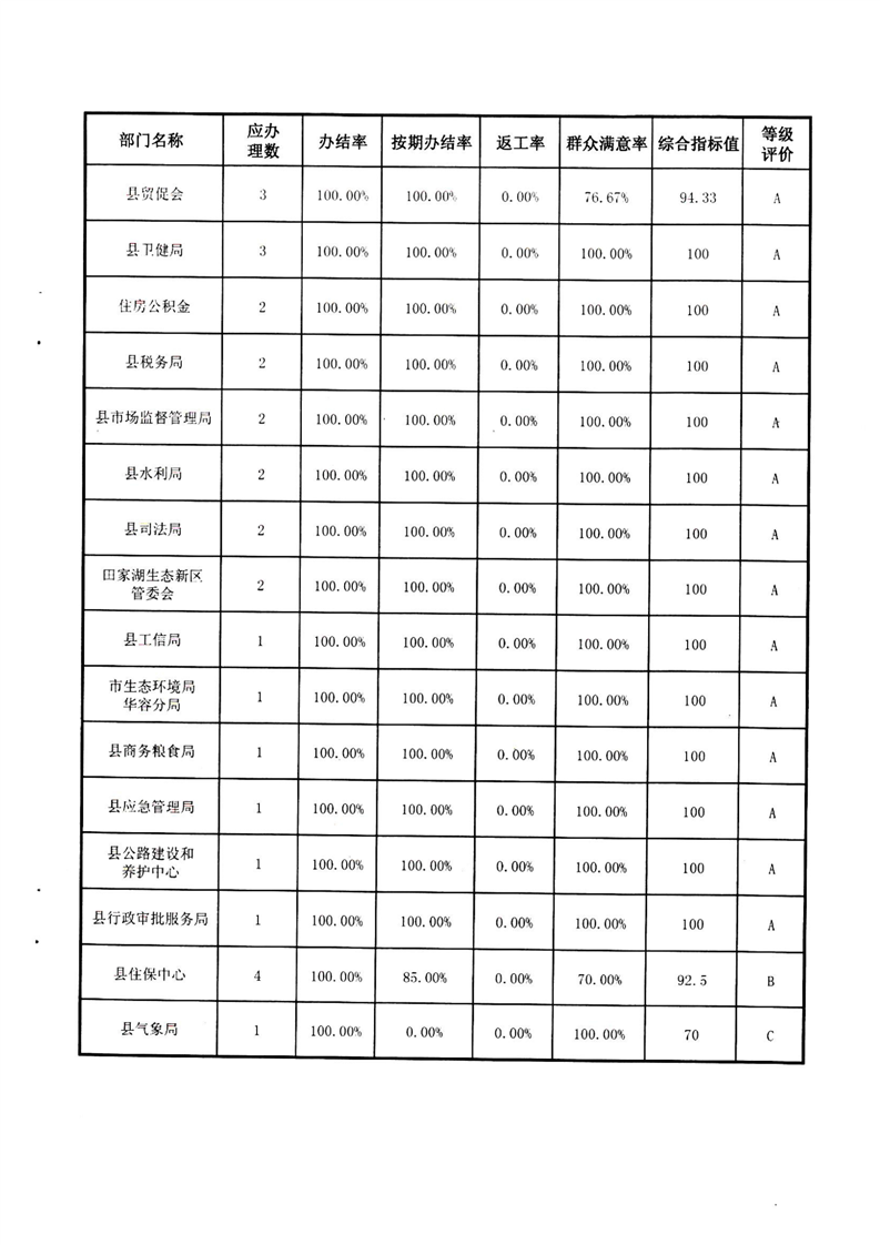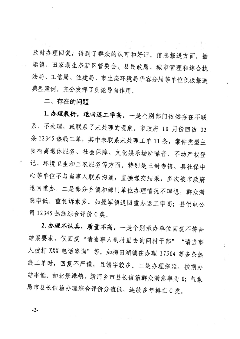 华容县人民政府办公室关于2020年下半年度“12345”公众服务热线、市长信箱、县长信箱办理情况的通报