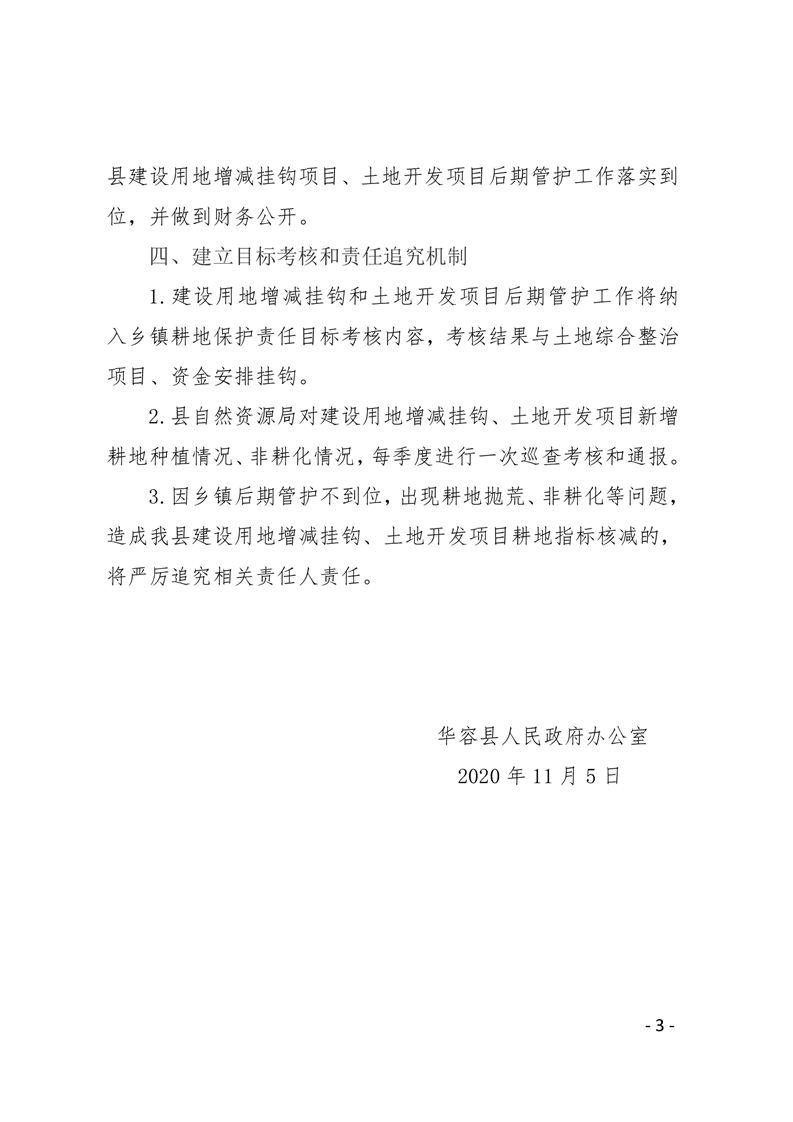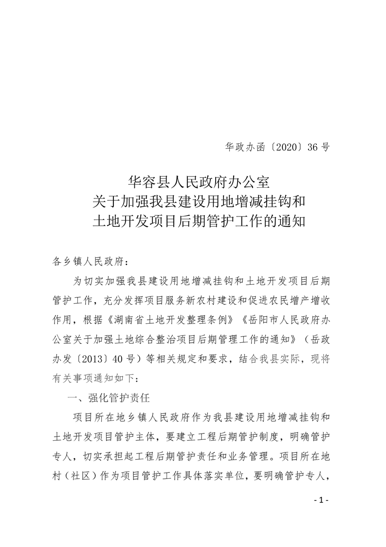 华容县人民政府办公室关于加强我县建设用地增减挂钩和土地开发项目后期管护工作的通知