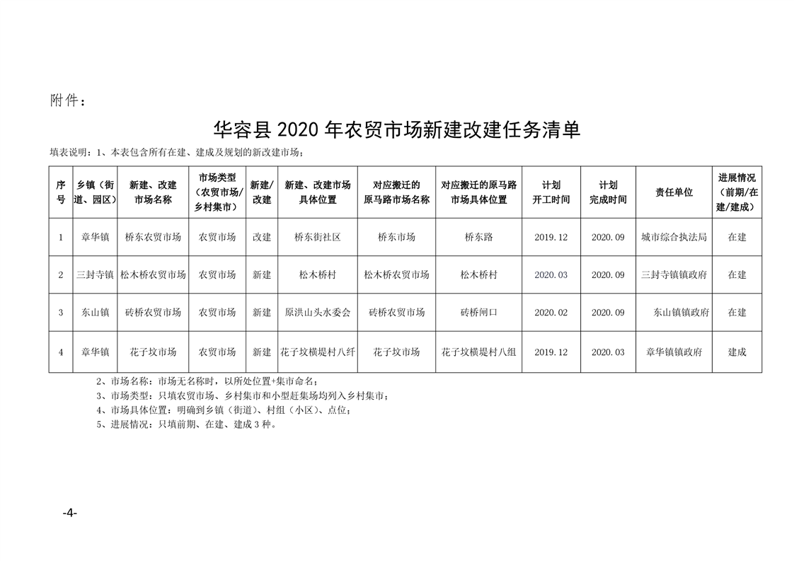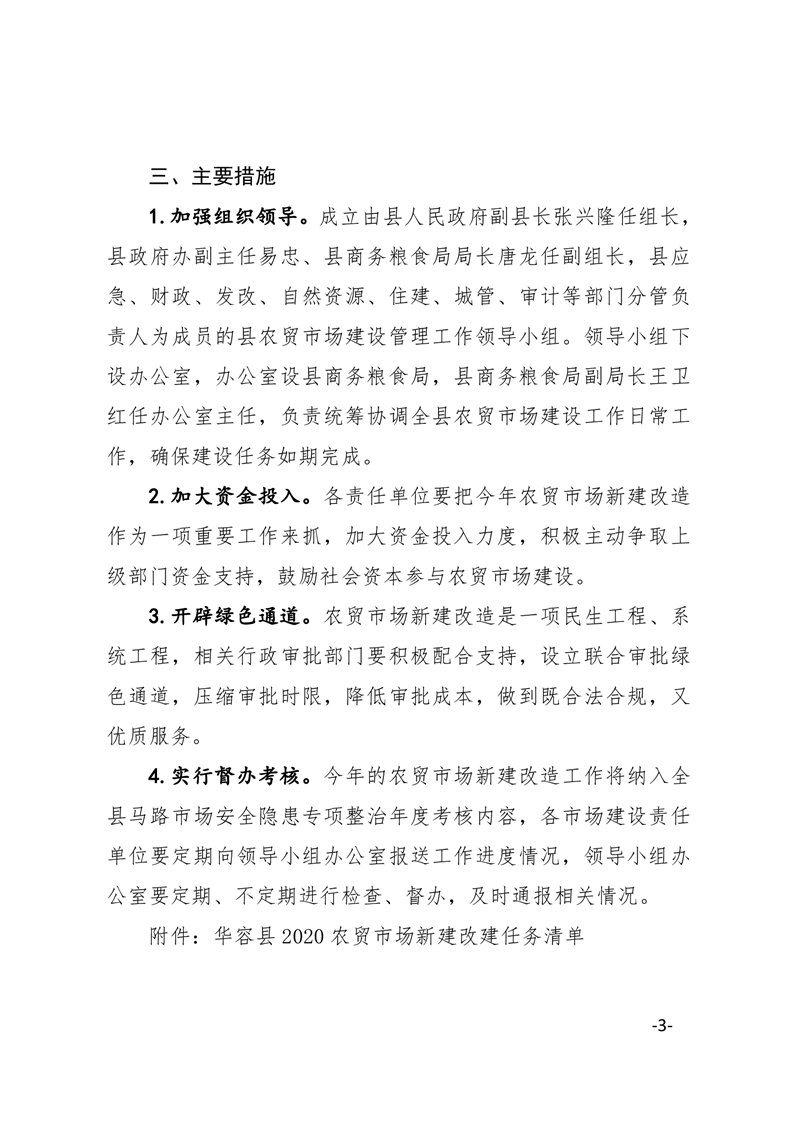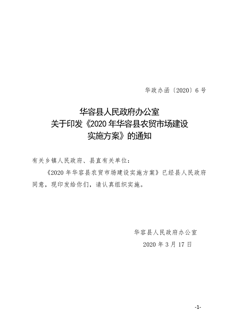 华容县人民政府办公室 关于印发《2020年华容县农贸市场建设 实施方案》的通知