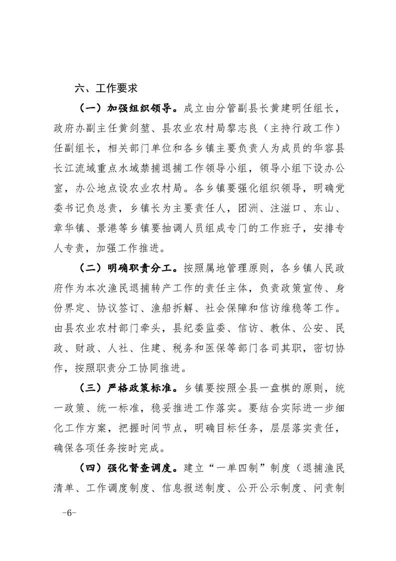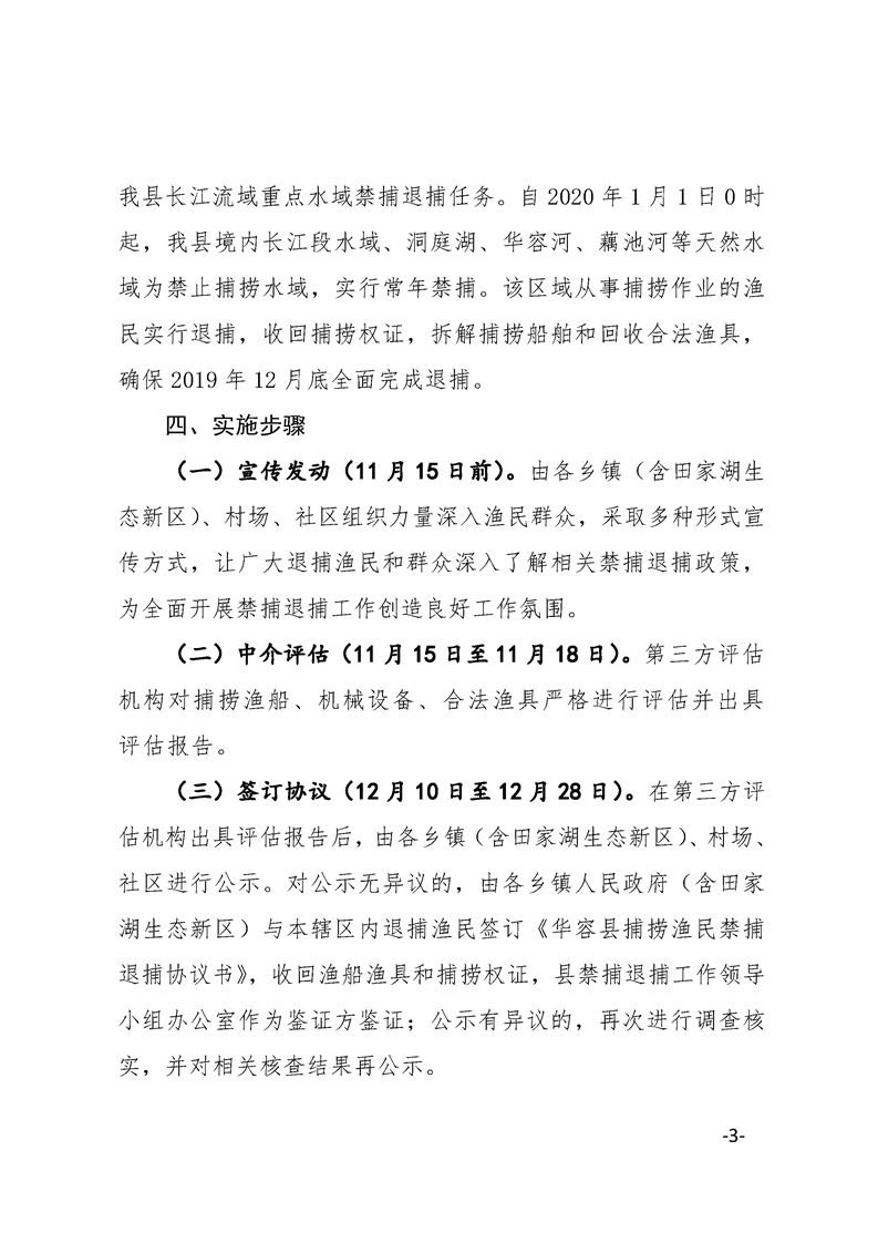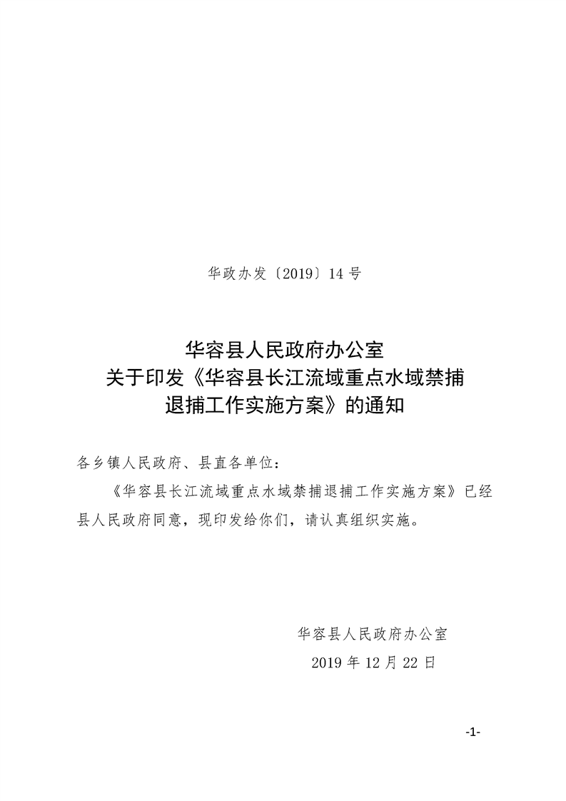 华容县人民政府办公室关于印发《华容县长江流域重点水域禁捕 退捕工作实施方案》的通知