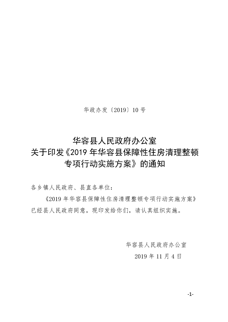 华容县人民政府办公室关于印发《2019年华容县保障性住房清理整顿 专项行动实施方案》的通知