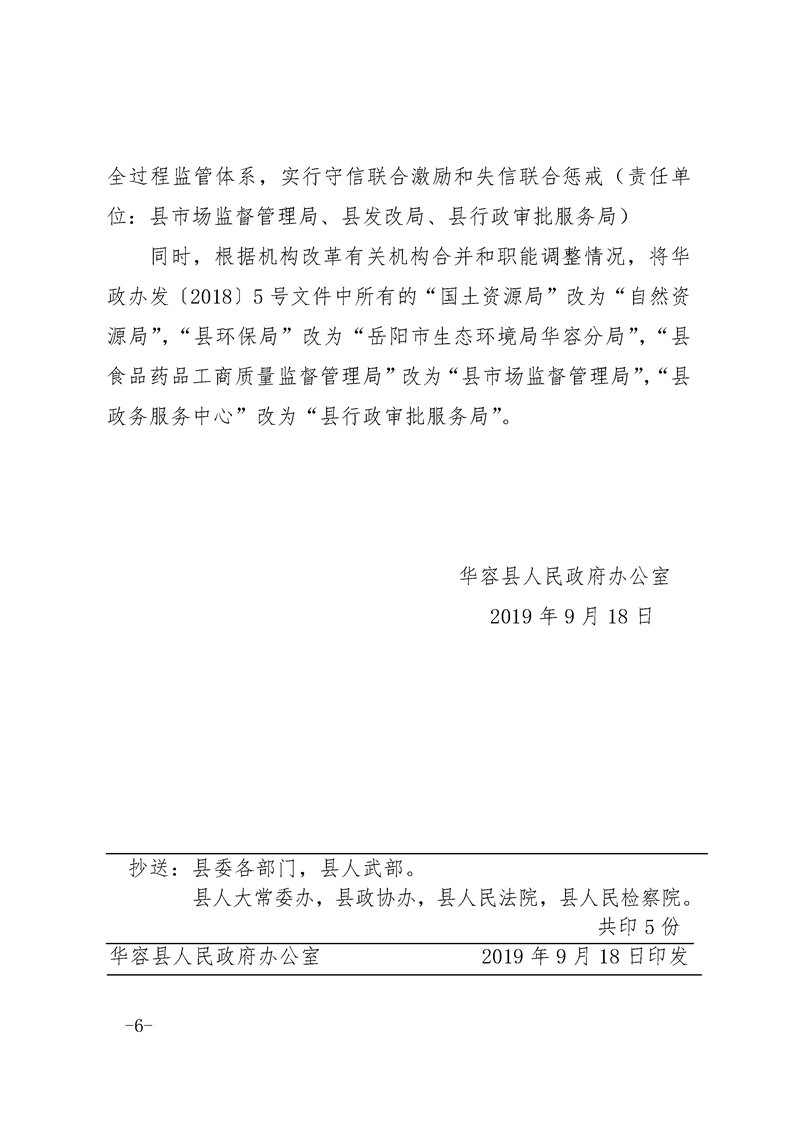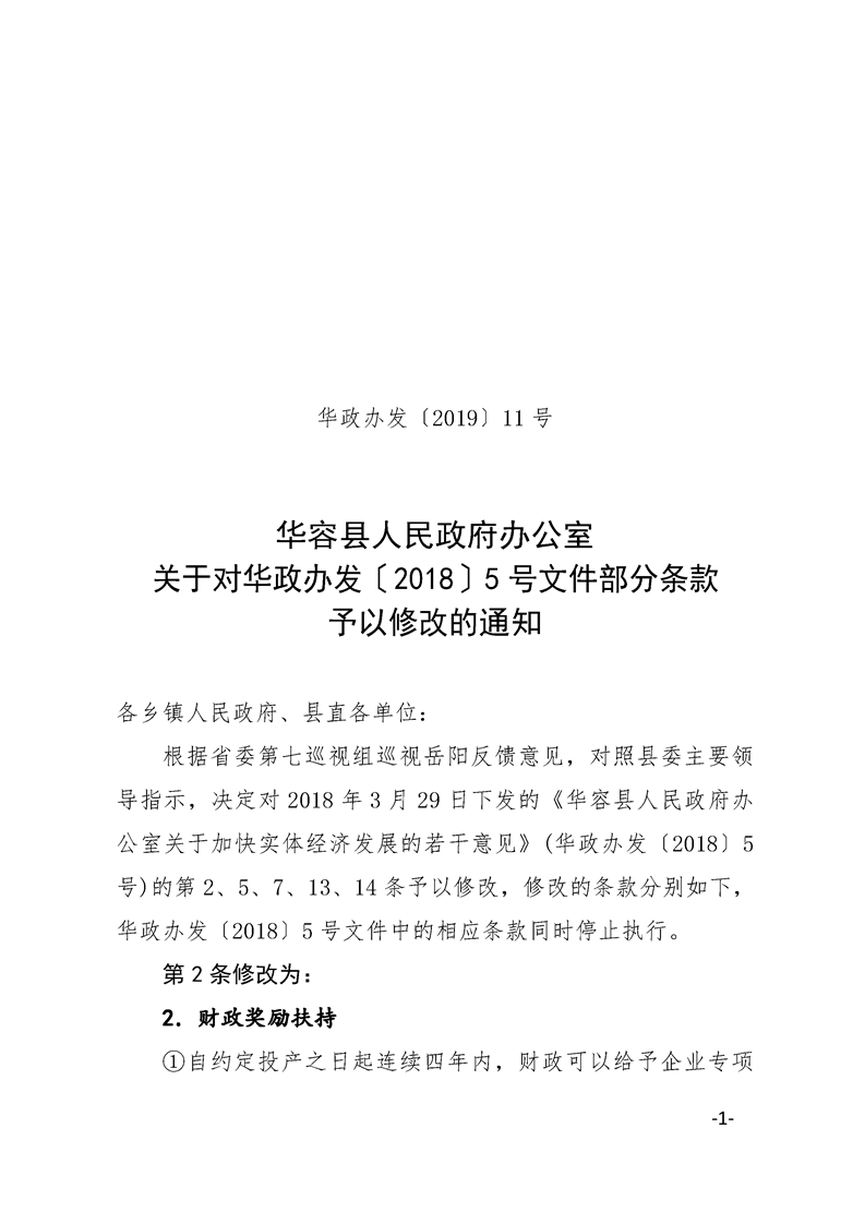 华容县人民政府办公室关于对华政办发〔2018〕5号文件部分条款 予以修改的通知