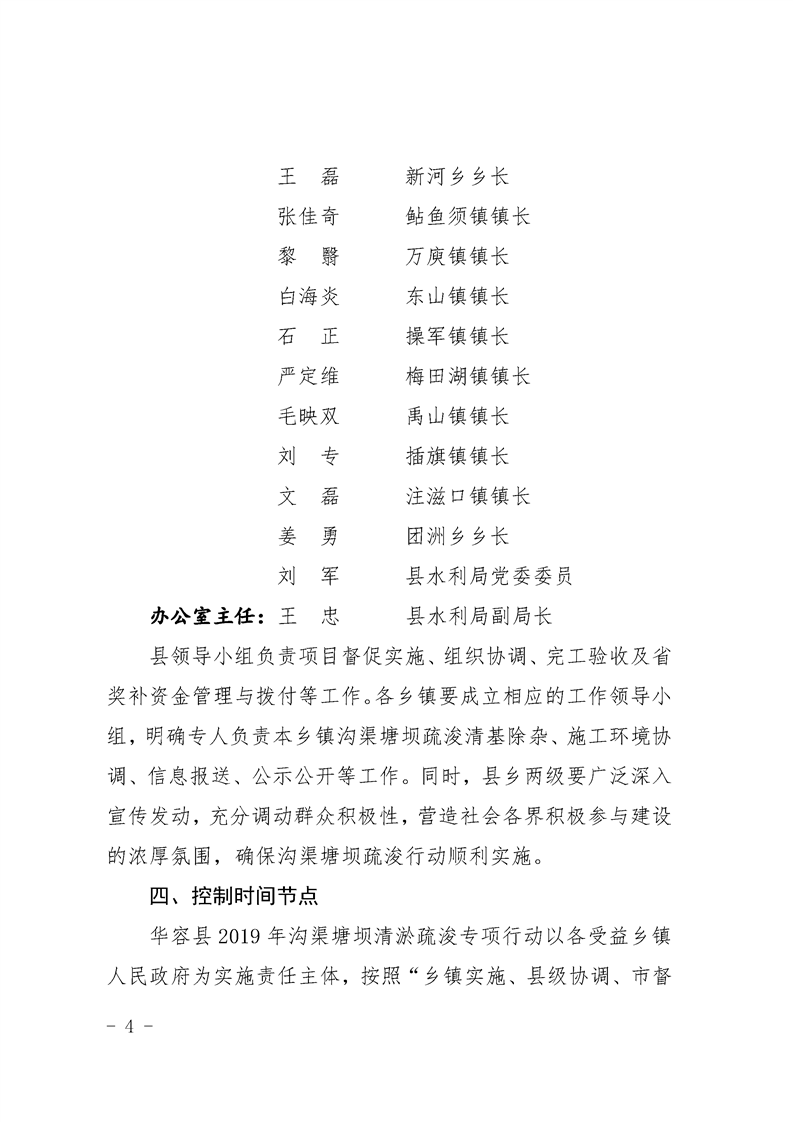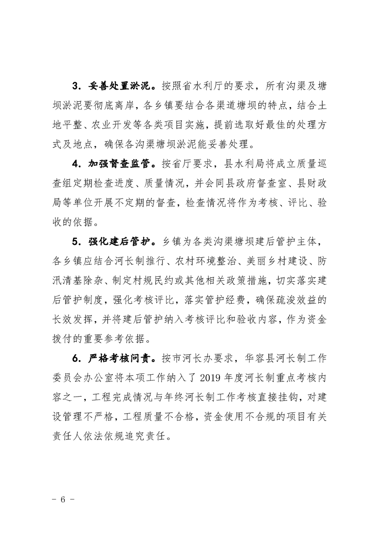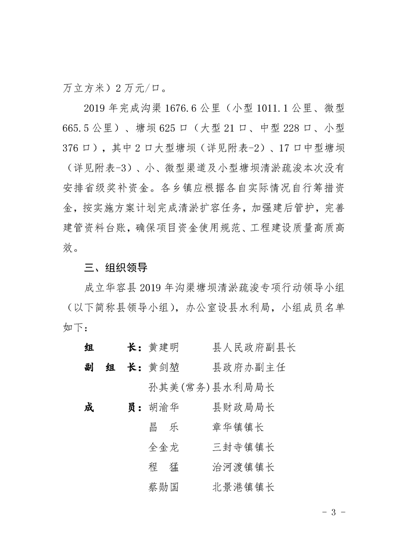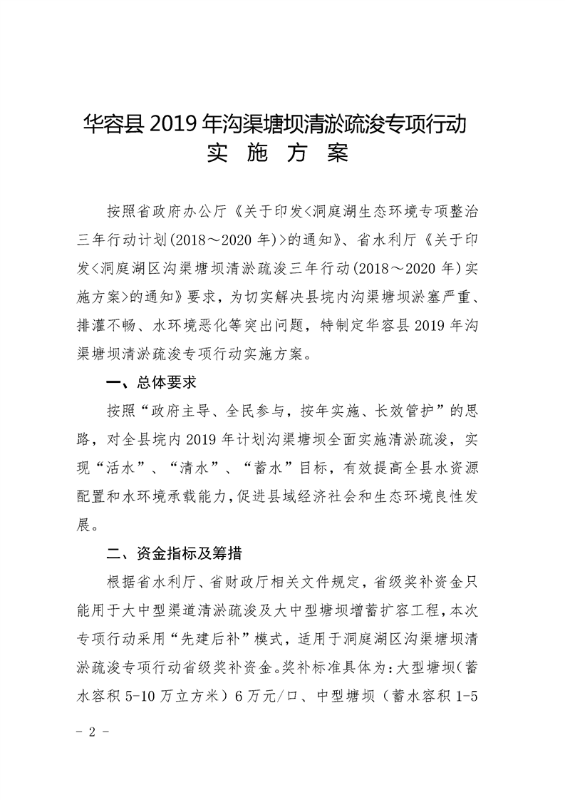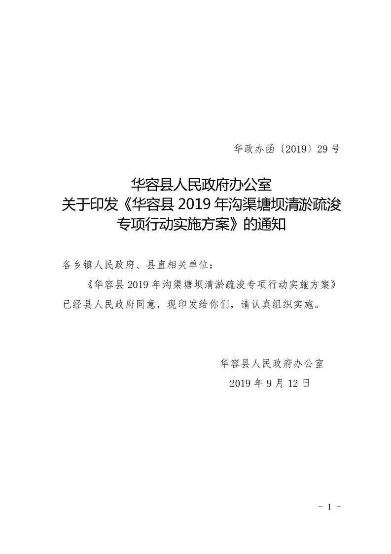 华容县人民政府办公室 关于印发《华容县2019年沟渠塘坝清淤疏浚 专项行动实施方案》的通知