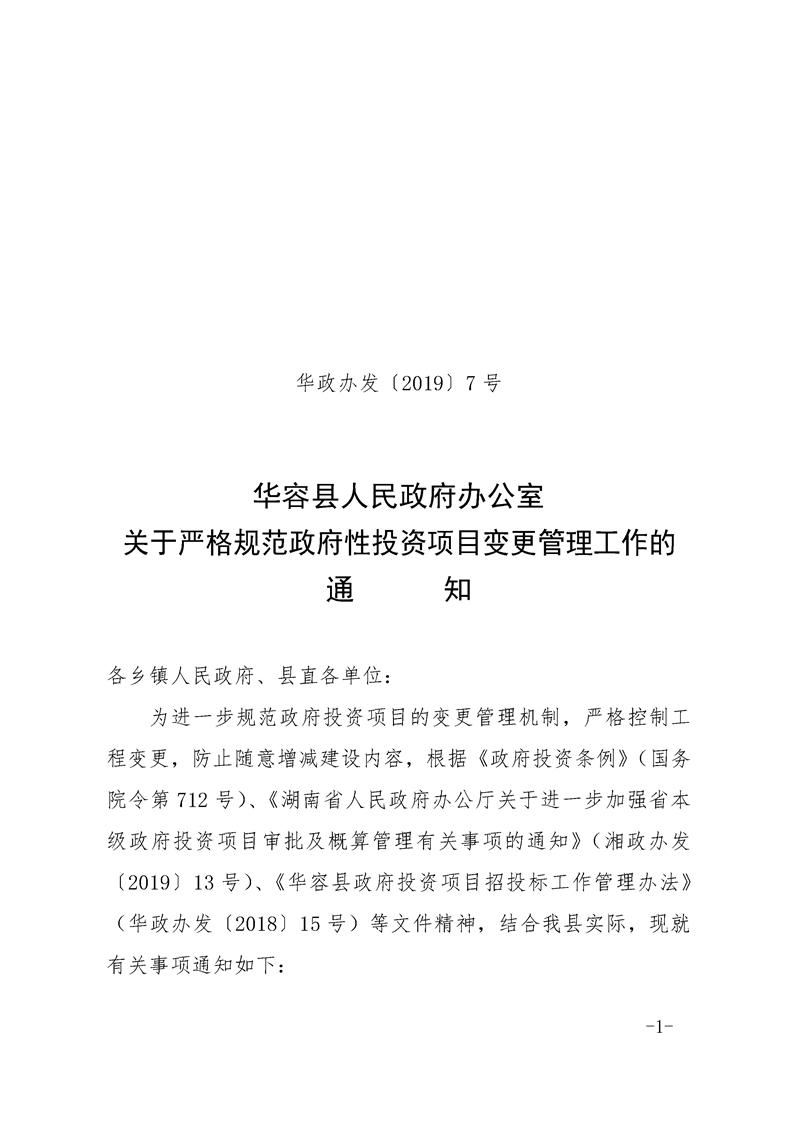 华容县人民政府办公室关于严格规范政府性投资项目变更管理工作的通知