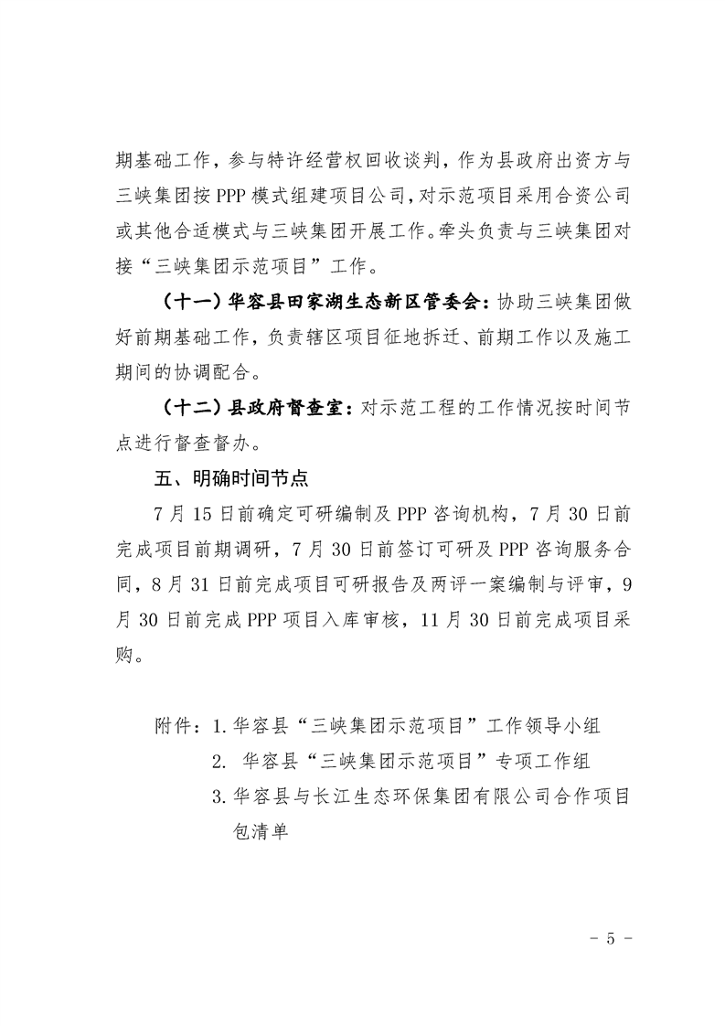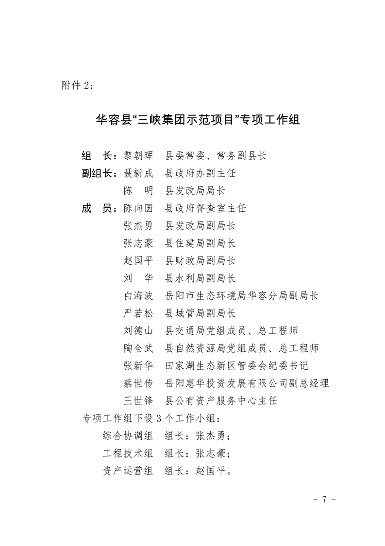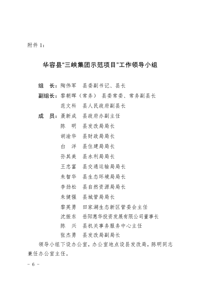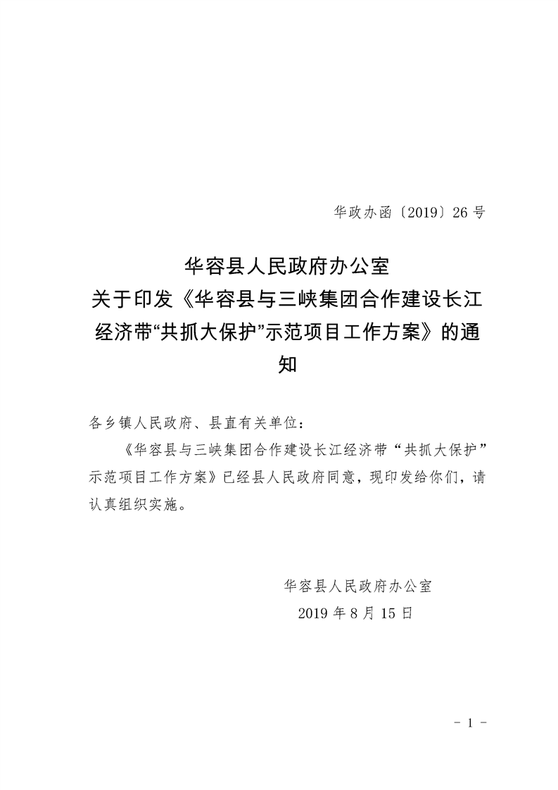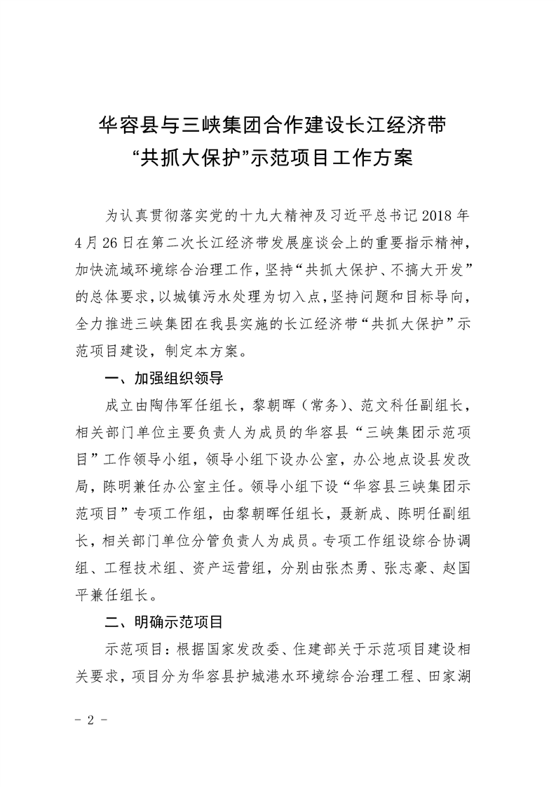 华容县人民政府办公室 关于印发《华容县与三峡集团合作建设长江经济带“共抓大保护”示范项目工作方案》的通 知