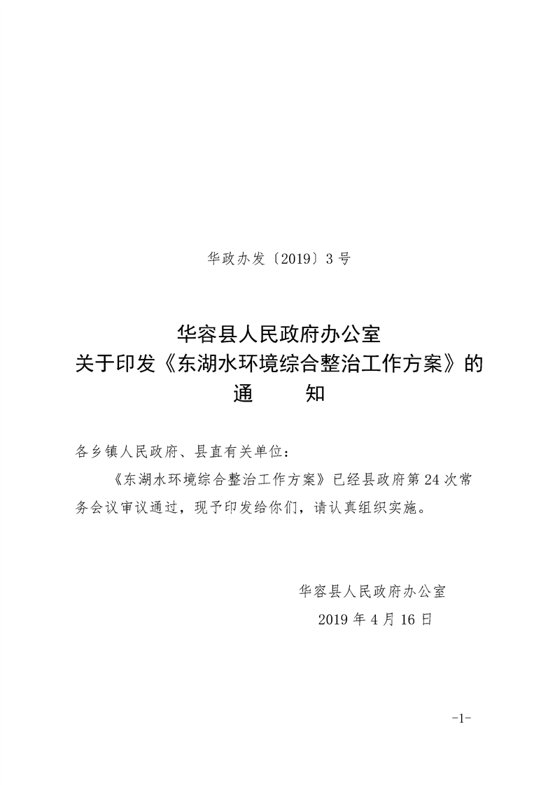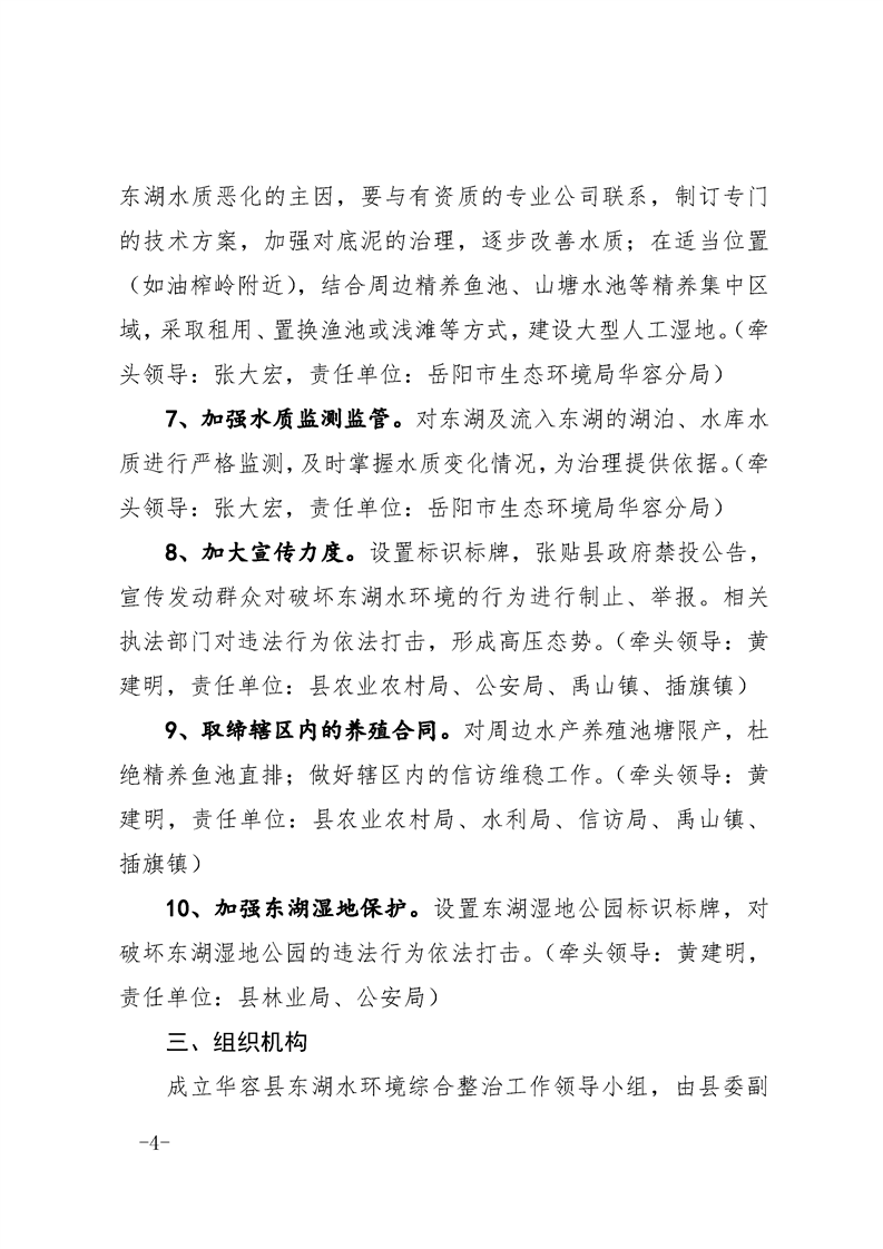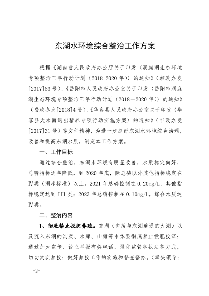 华容县人民政府办公室 关于印发《东湖水环境综合整治工作方案》的通 知