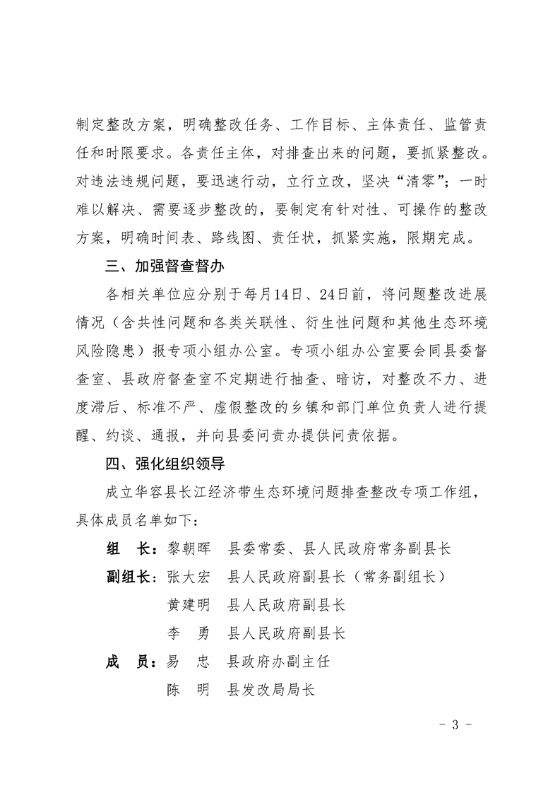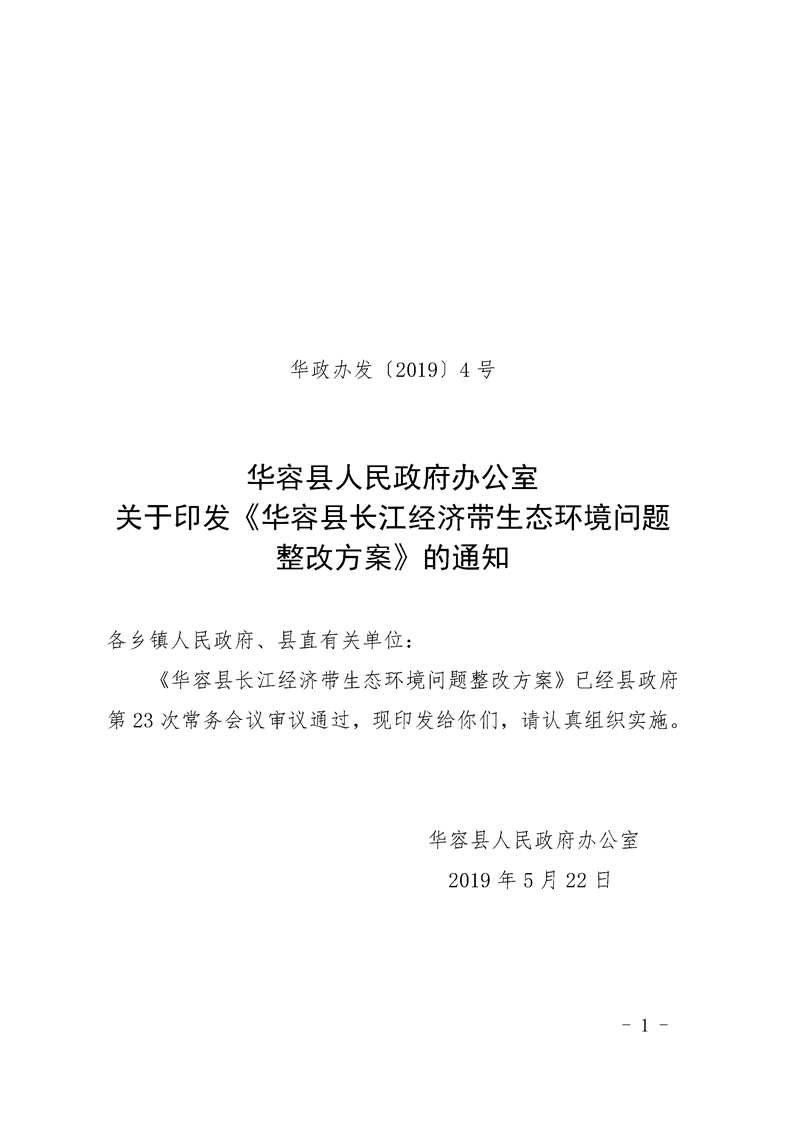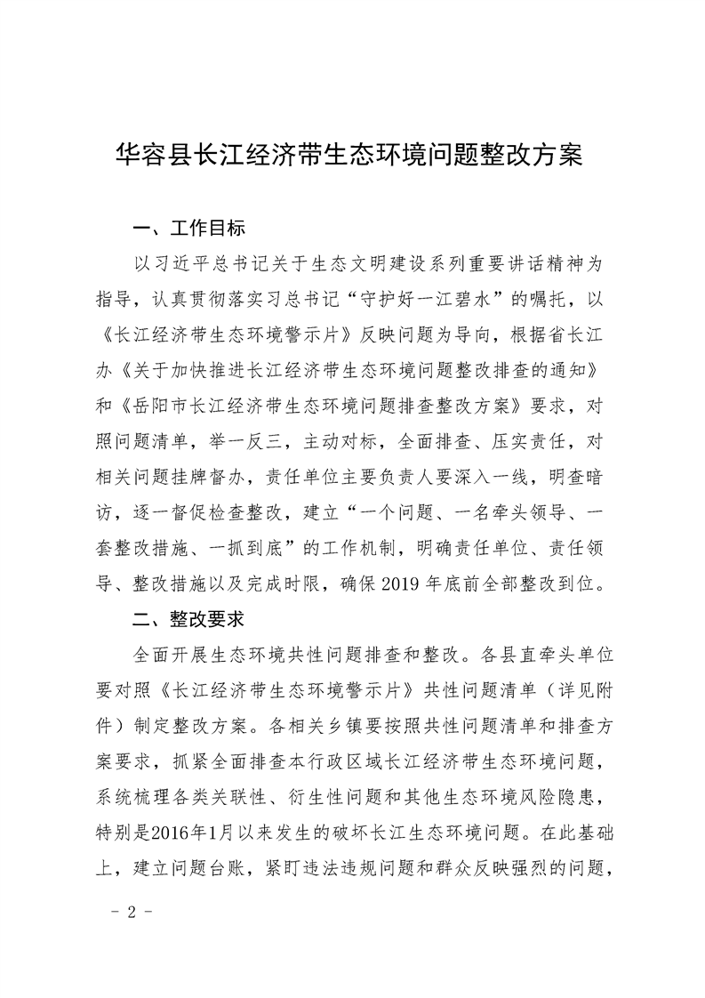 华容县人民政府办公室 关于印发《华容县长江经济带生态环境问题 整改方案》的通知