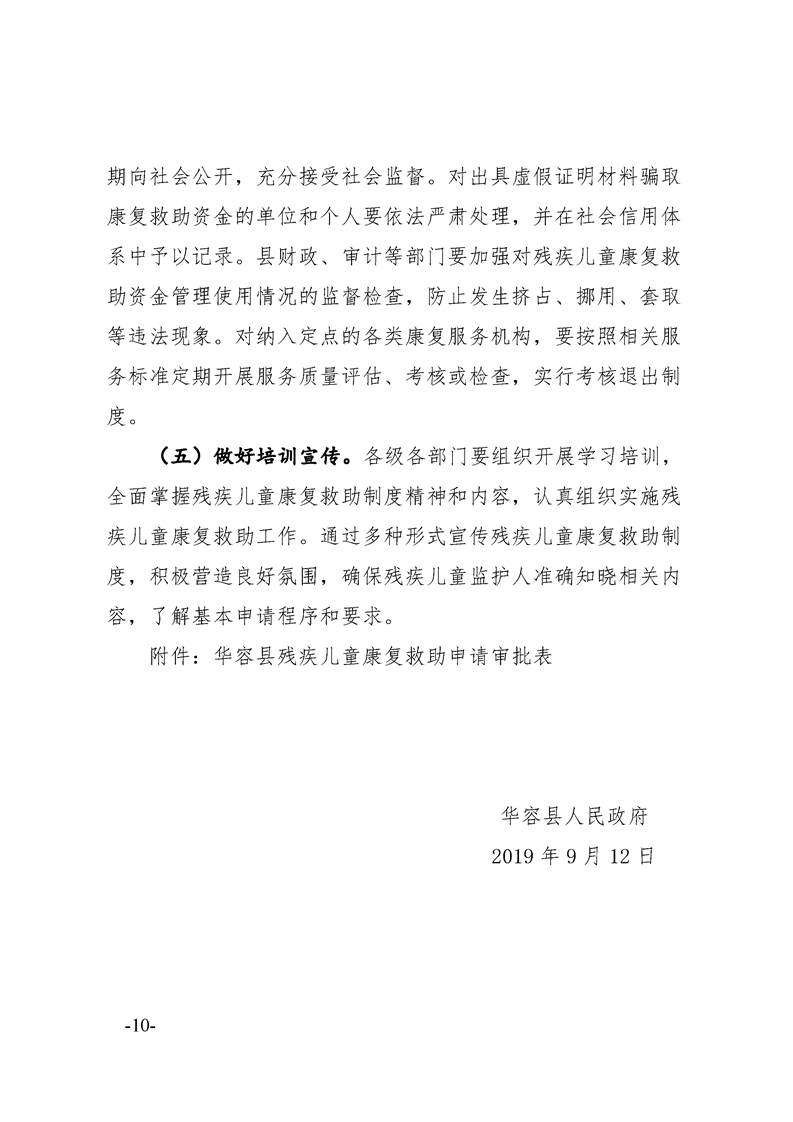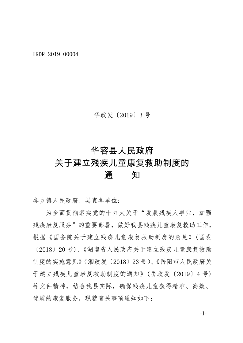 华容县人民政府关于建立残疾儿童康复救助制度的通知