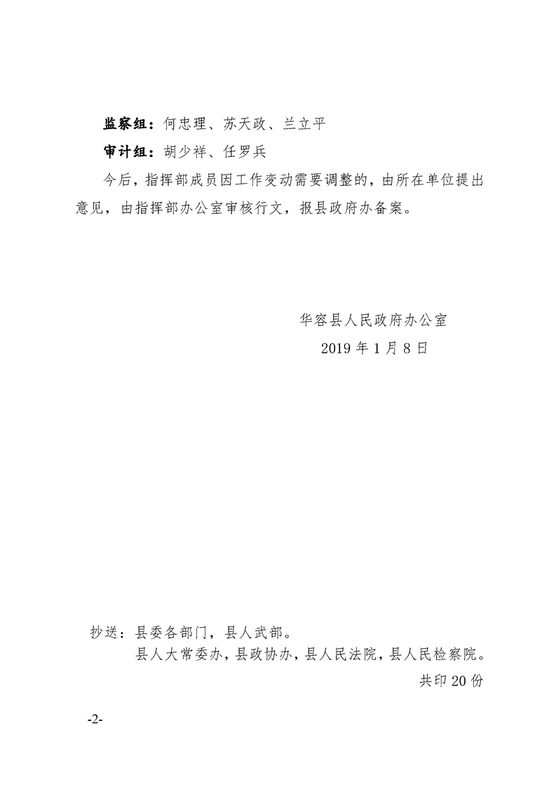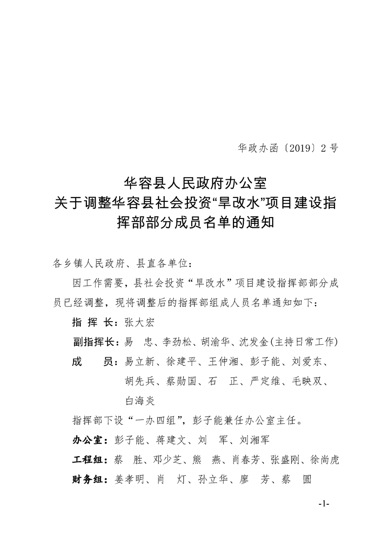 华容县人民政府办公室关于调整华容县社会投资“旱改水”项目建设指挥部部分成员名单的通知