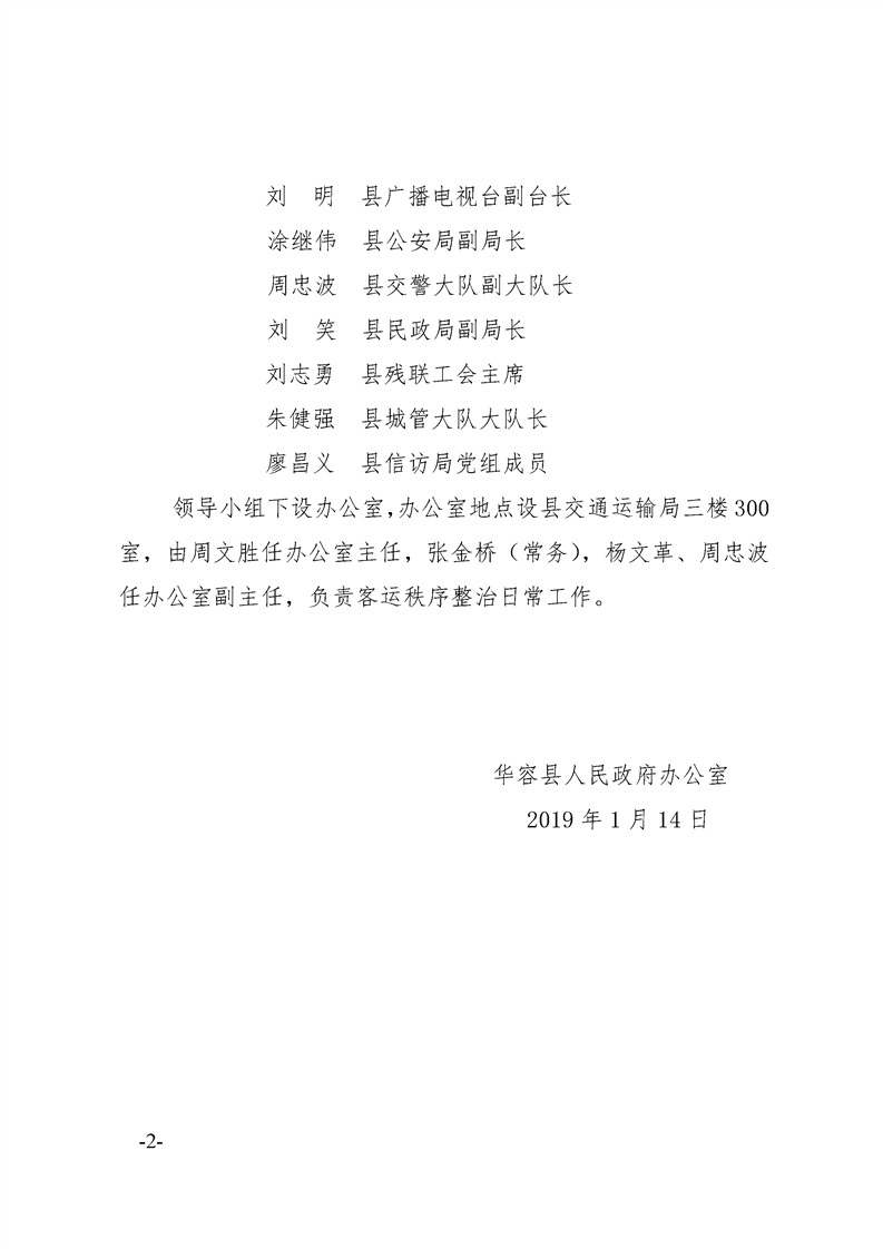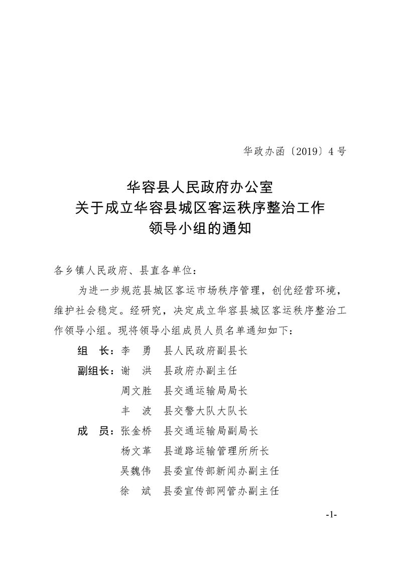 华容县人民政府办公室关于成立华容县城区客运秩序整治工作 领导小组的通知