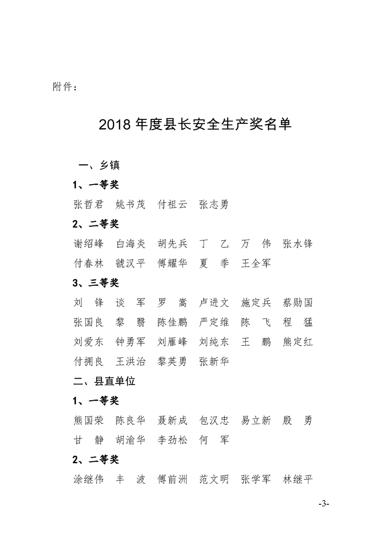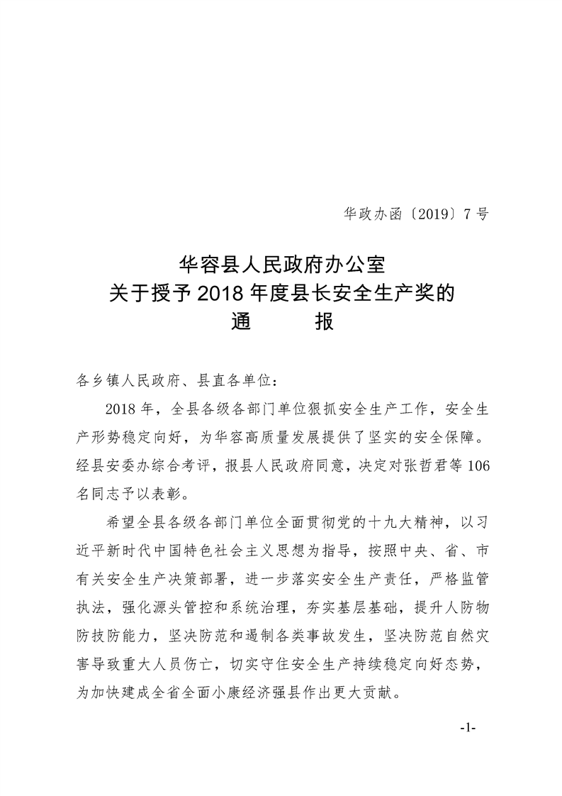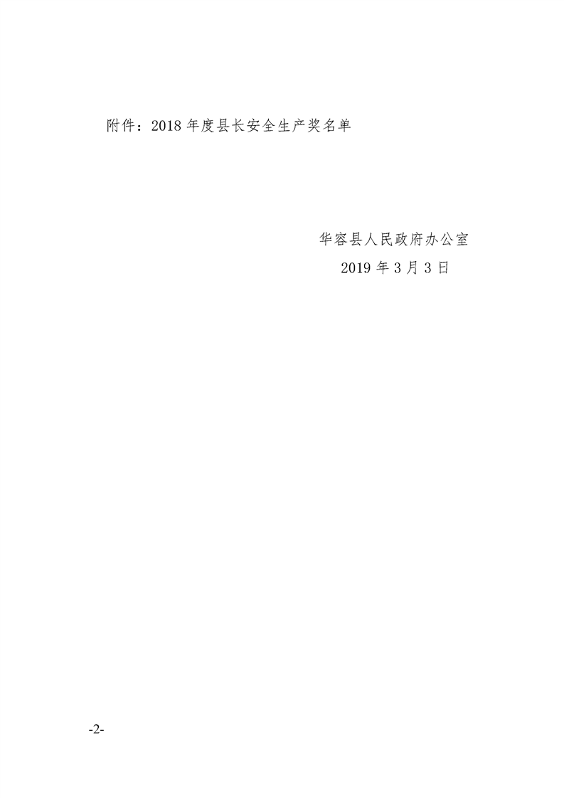 华容县人民政府办公室 关于授予2018年度县长安全生产奖的通报