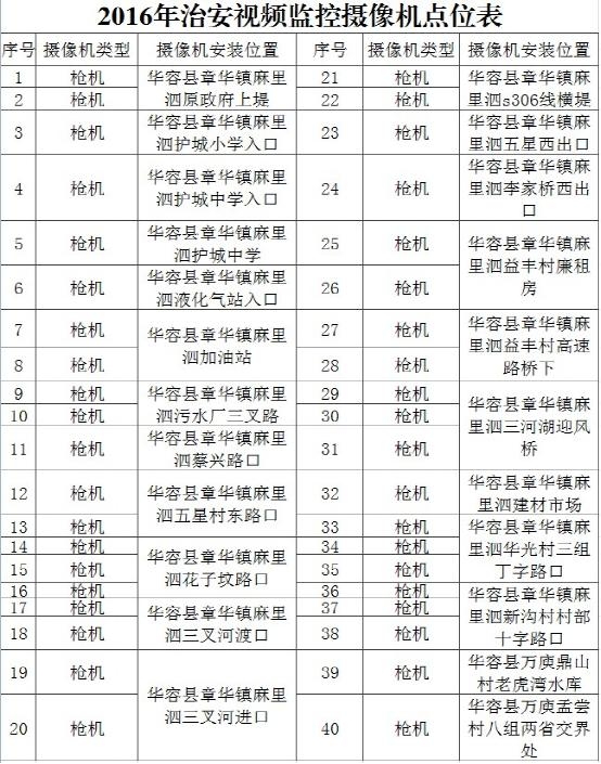 关于2016年华容县新增社会治安视频监控摄像头的公示