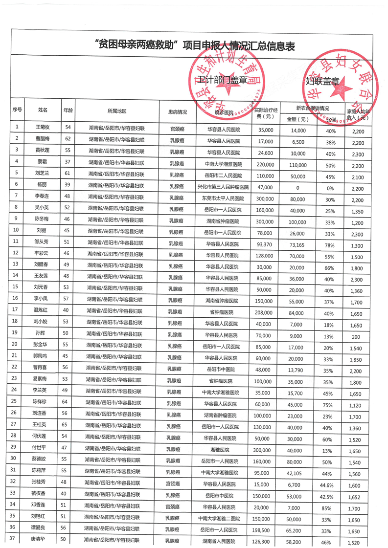 “贫困母亲两癌救助”项目申报人情况汇总信息表