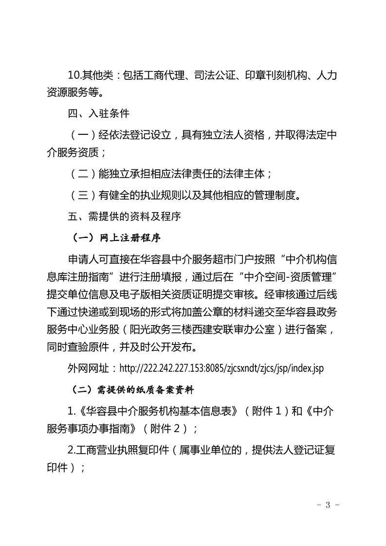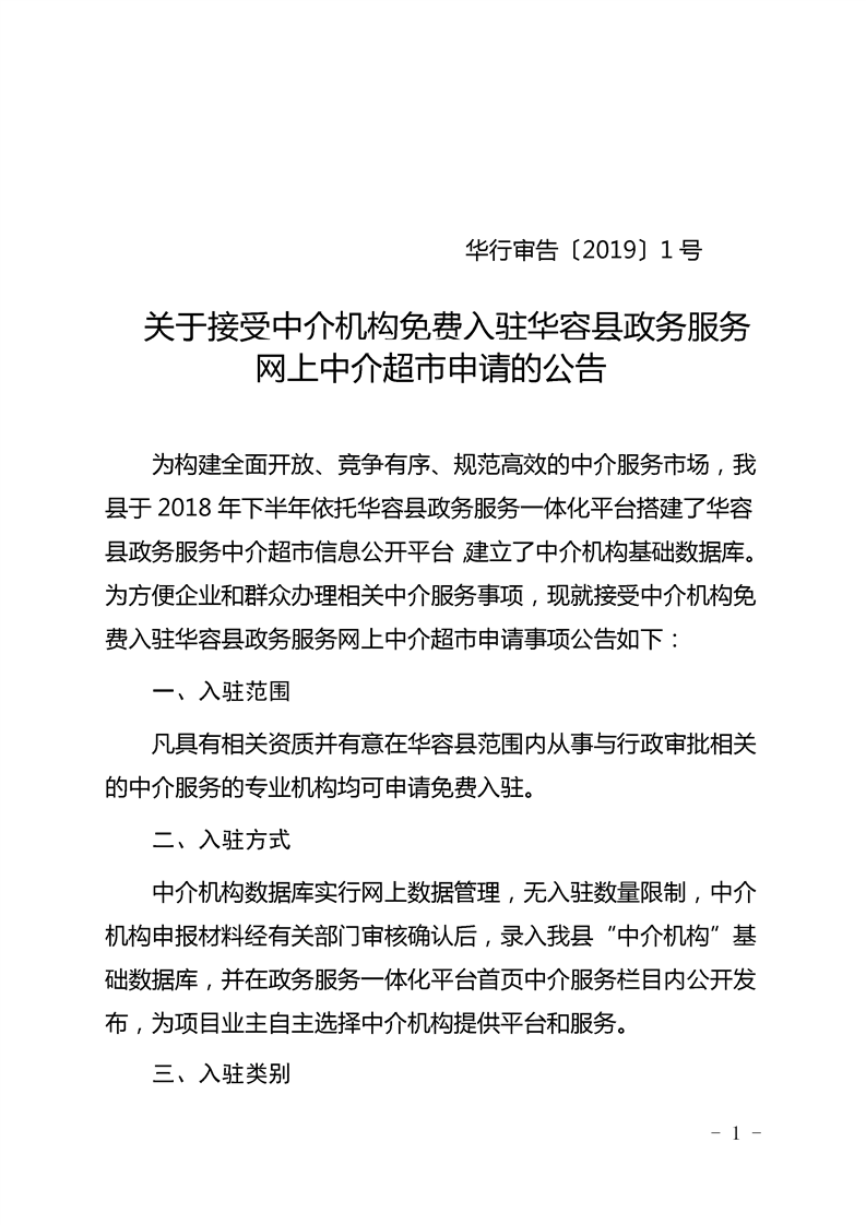 关于接受中介机构免费入驻华容县政务服务网上中介超市申请的公告