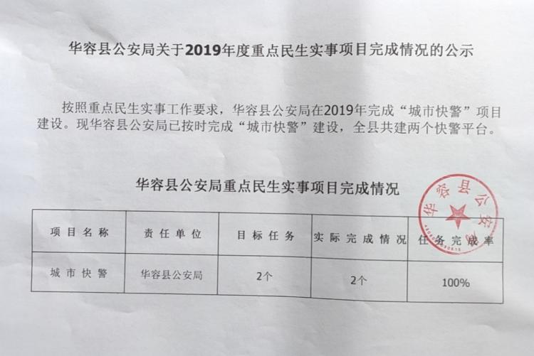 华容县公安局关于2019年度重点民生实事项目(“城市快警”项目)完成情况的公示