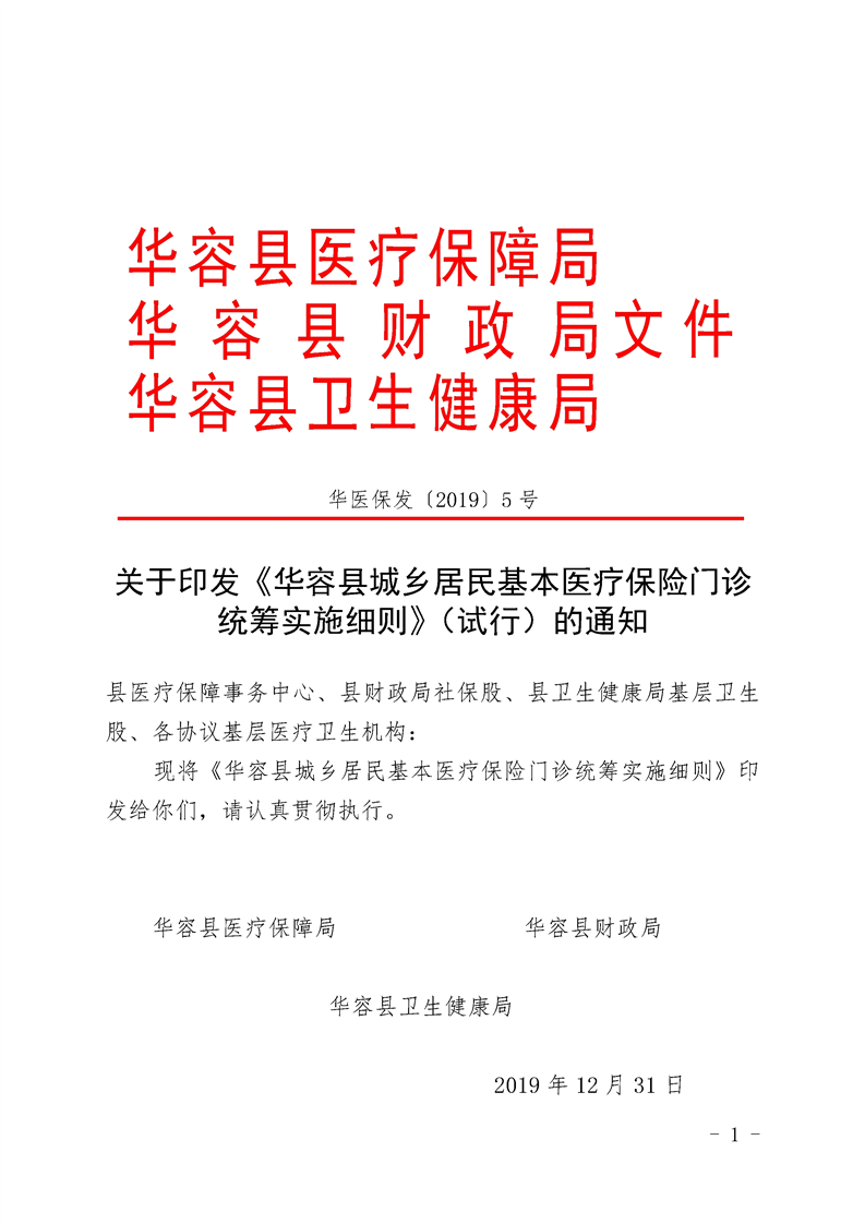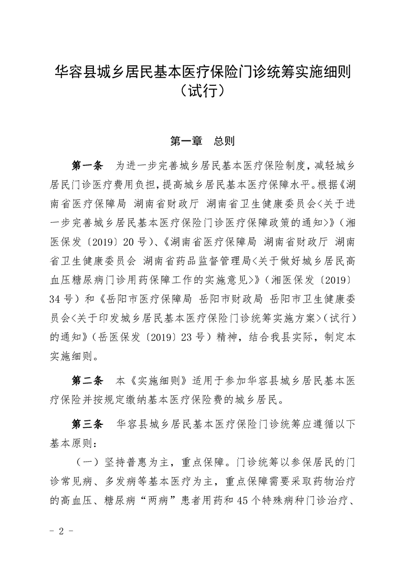 关于印发《华容县城乡居民基本医疗保险门诊统筹实施细则》(试行)的通知