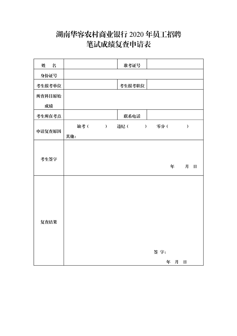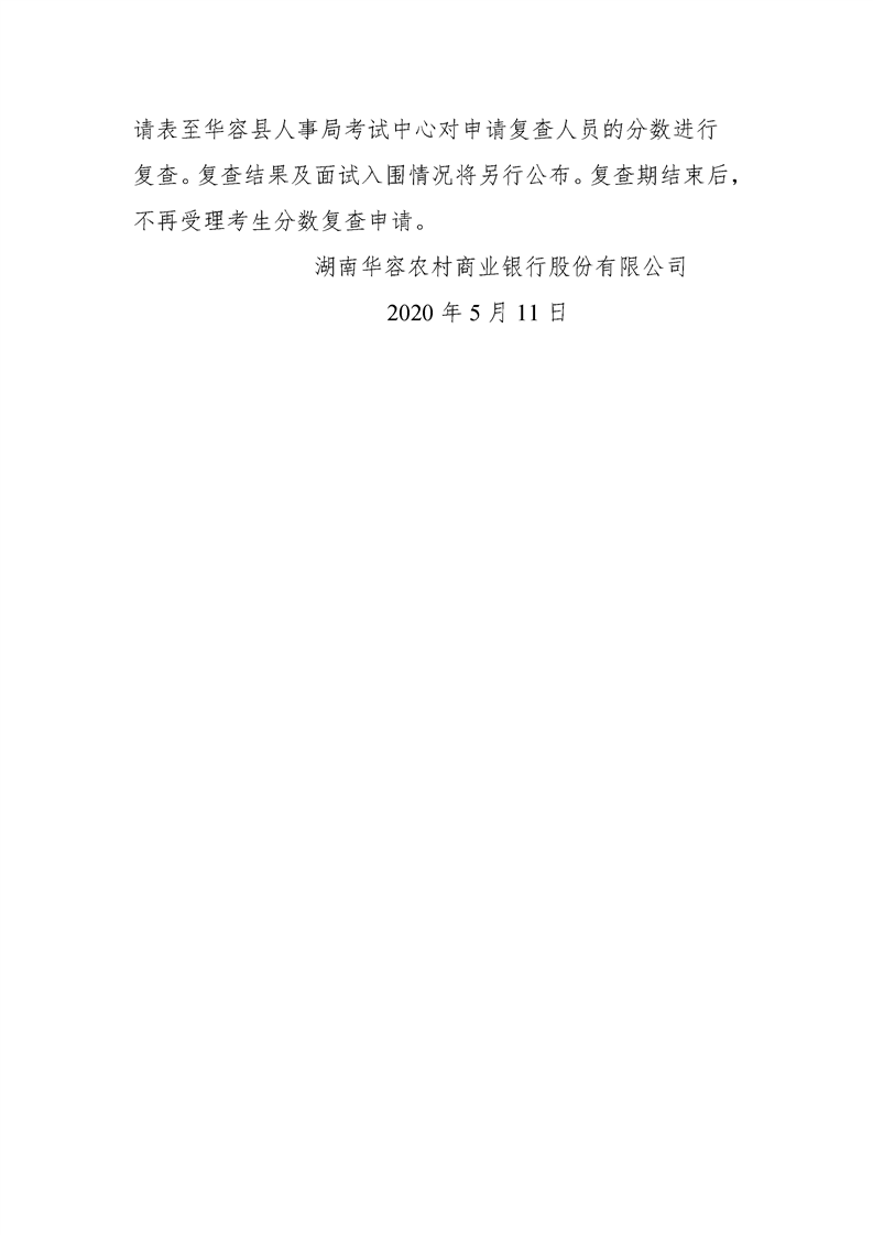 湖南华容农村商业银行股份有限公司 2020年员工招聘笔试成绩公布公告