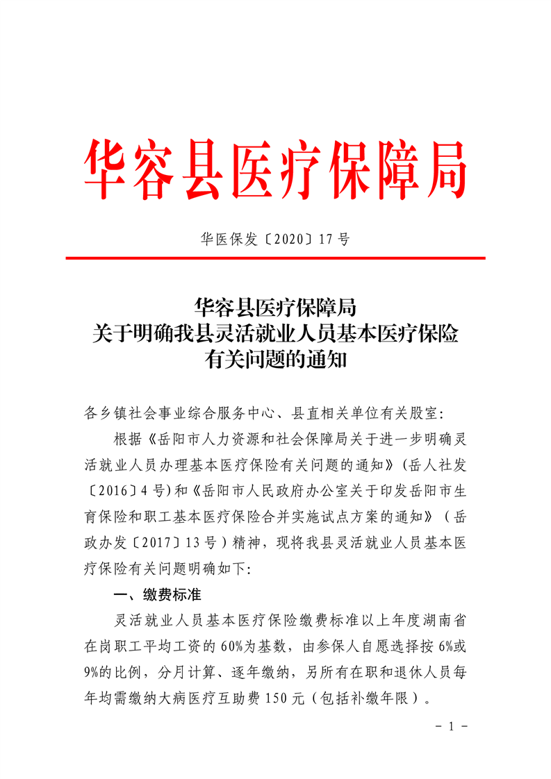 华容县医疗保障局 关于明确我县灵活就业人员基本医疗保险有关问题的通知