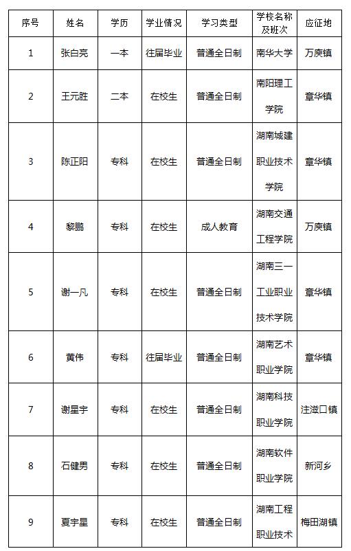 2021年华容县春季征兵第一批体检于2月4日结束,经再次宣传发动及筛选,现组织第二批应征青年体检,除已报名未体检人员外,已体检不合格人员按照大学毕业生愿检尽检,在校大学生能检则检,高中生及以下学历人员原则上慎检,现将具体名单公布如下: