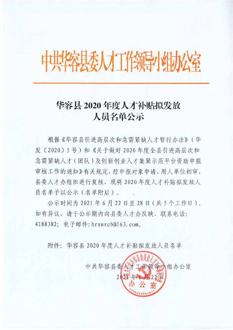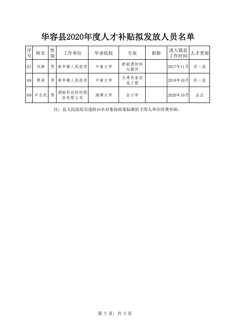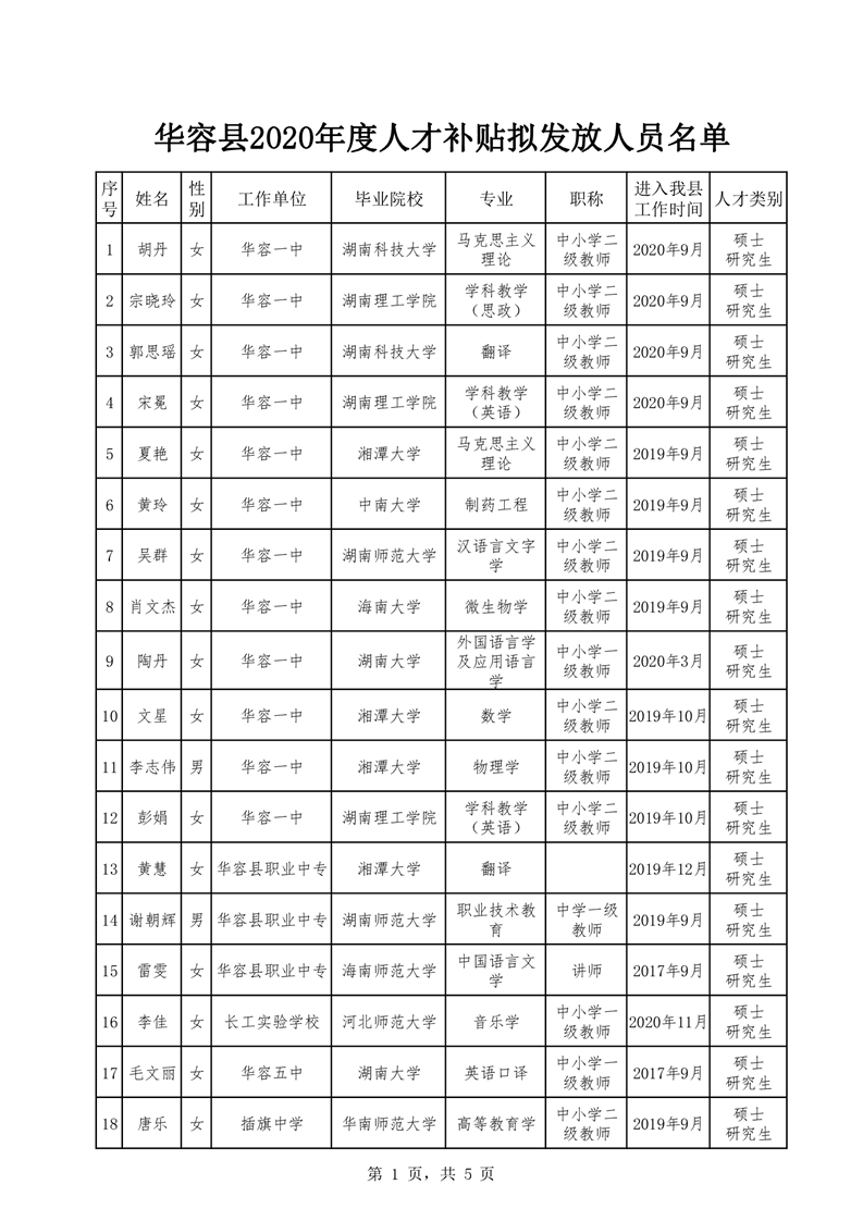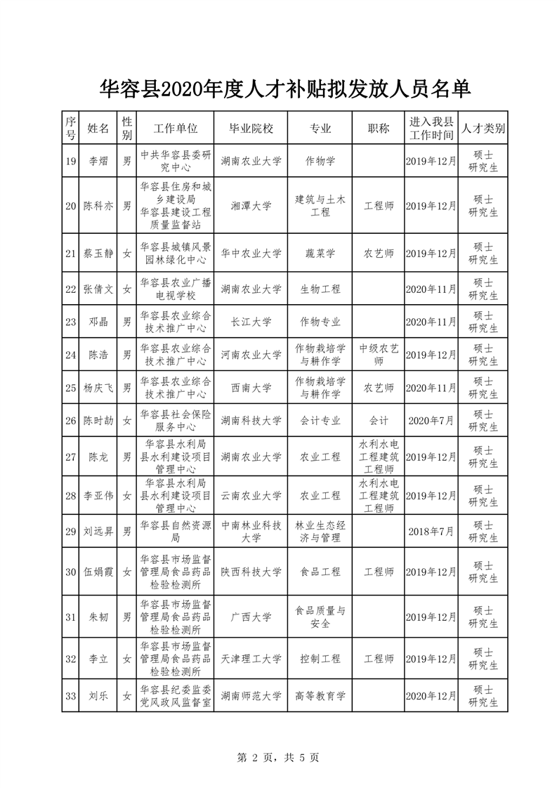 华容县2020年度人才补贴拟发放人员名单.xlsx