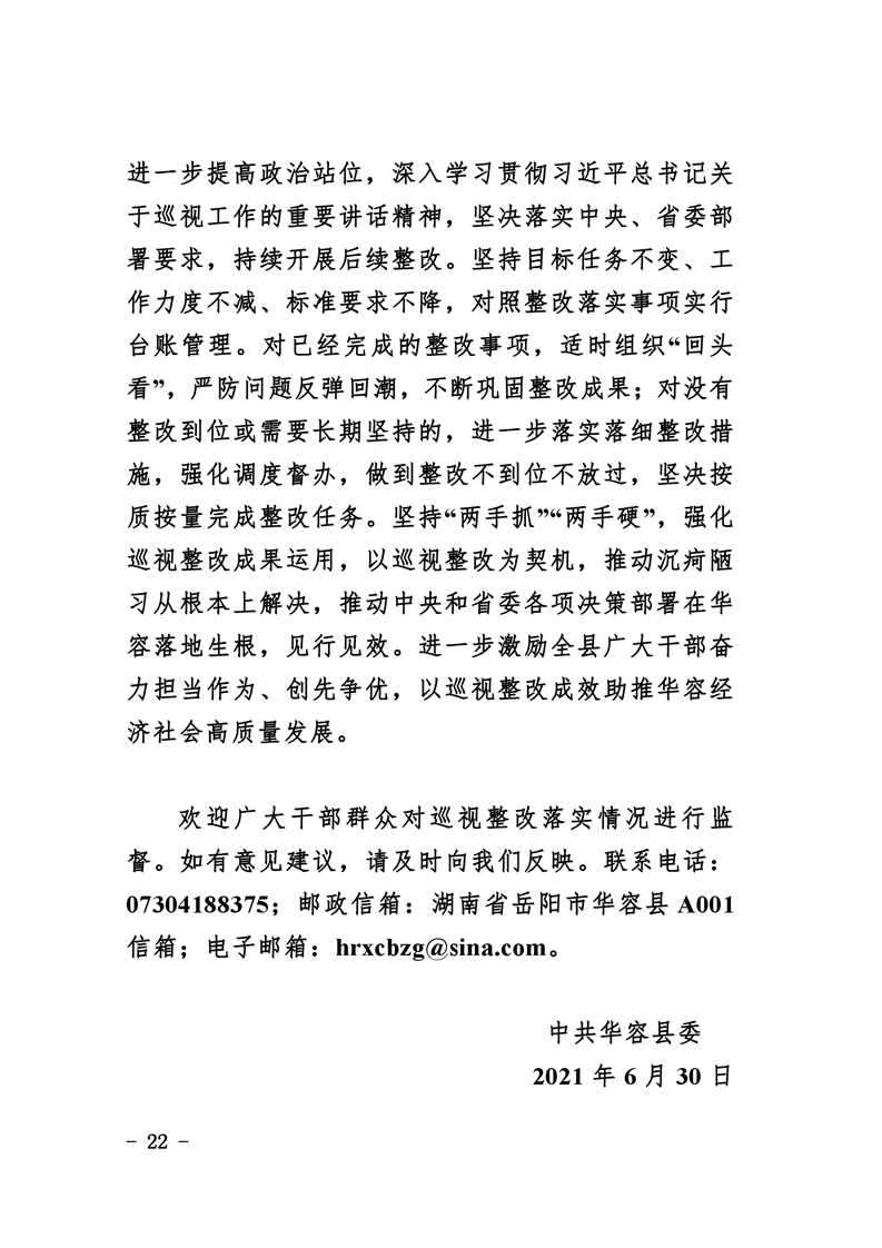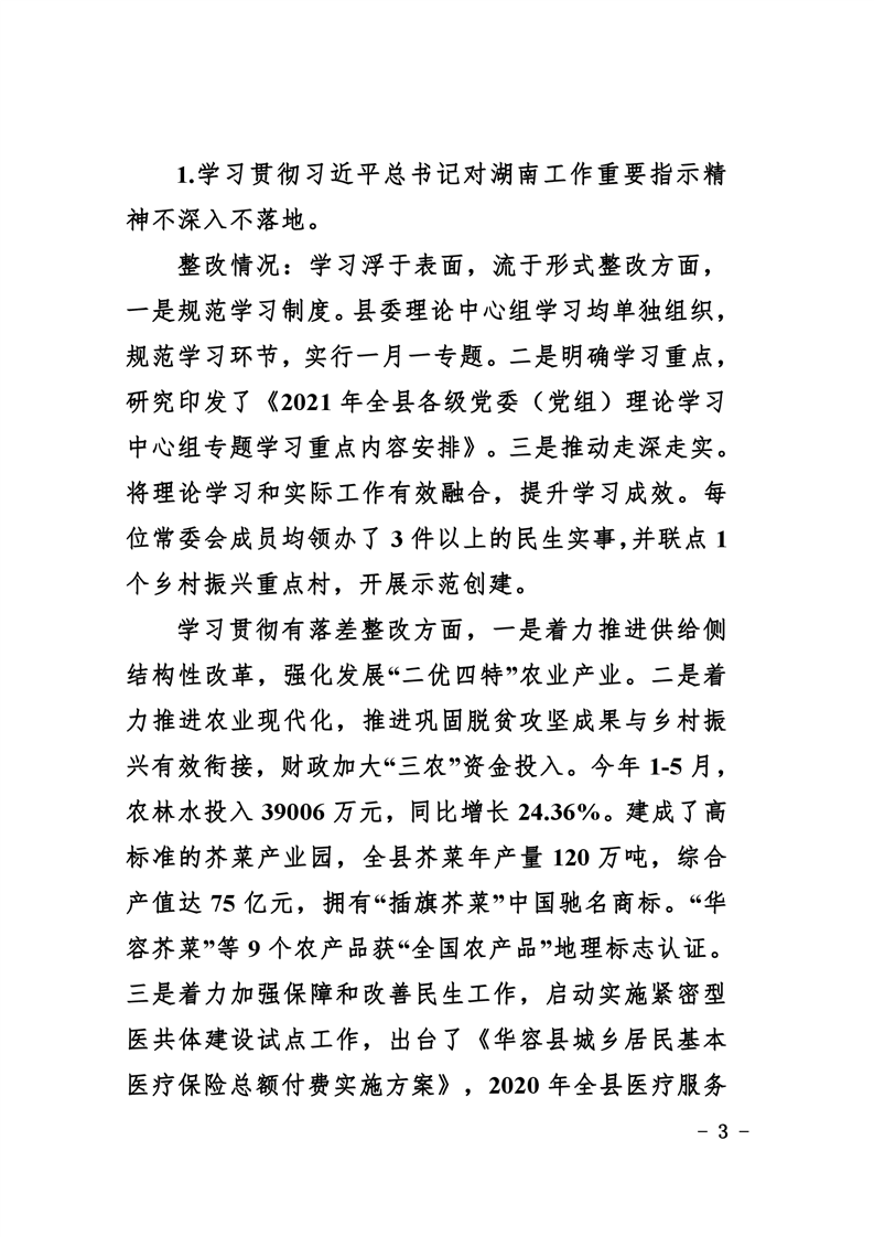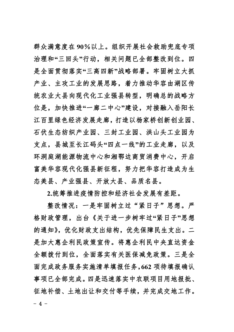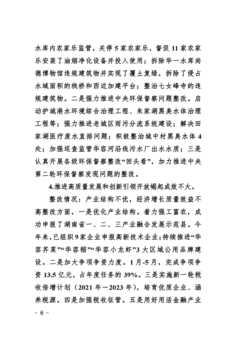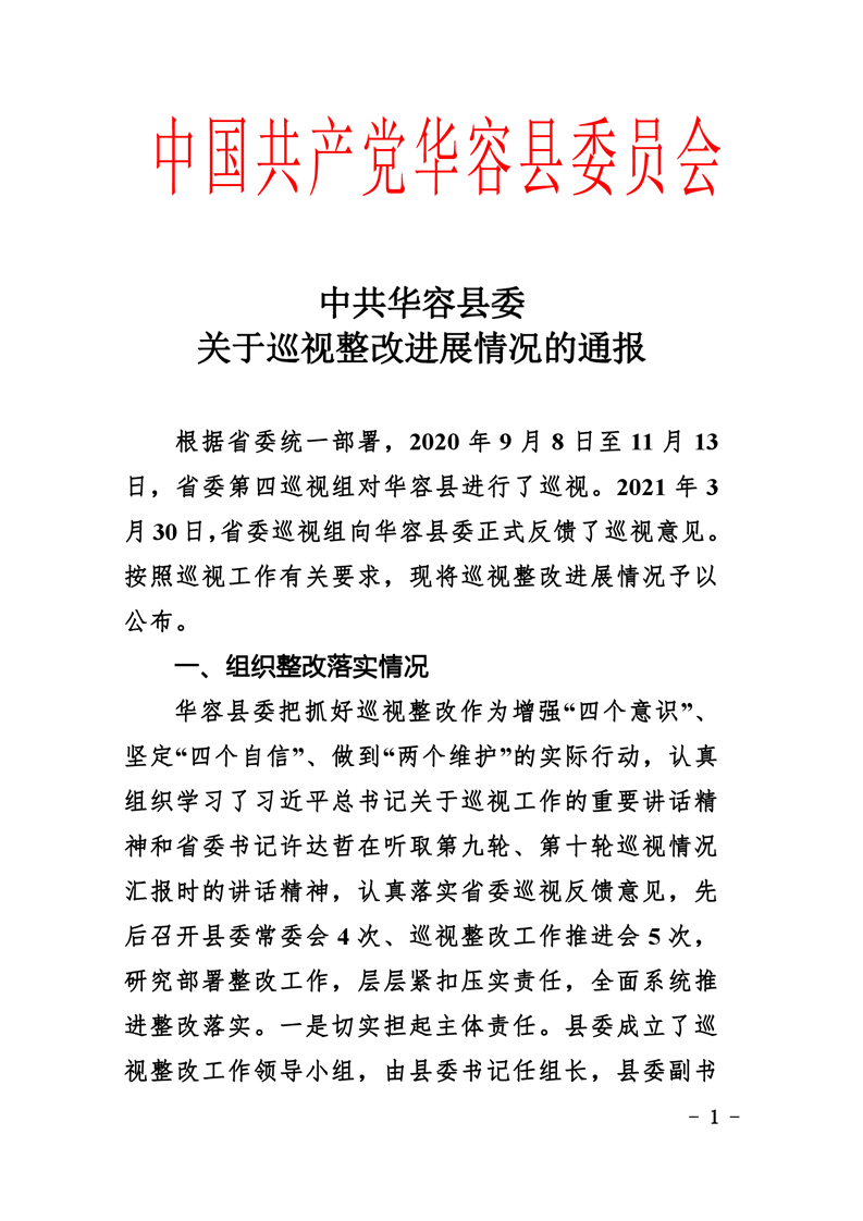 中共华容县委关于巡视整改进展情况的通报