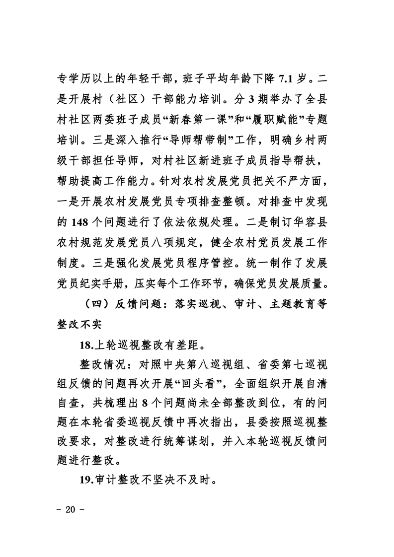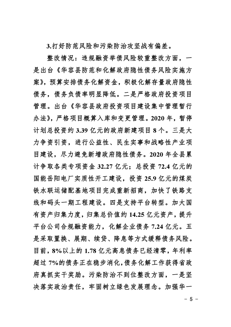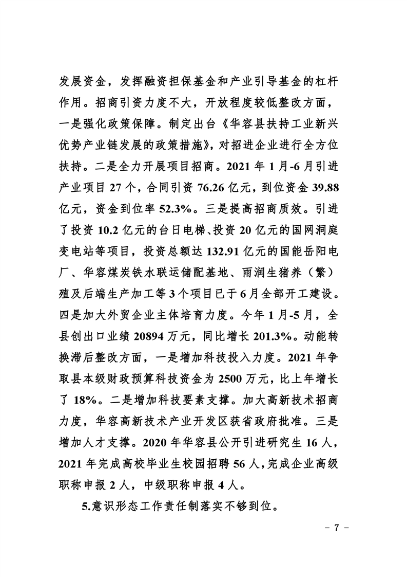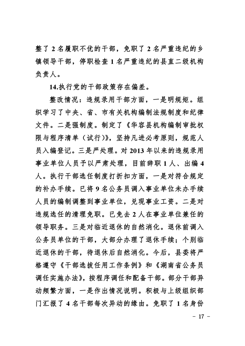 中共华容县委关于巡视整改进展情况的通报