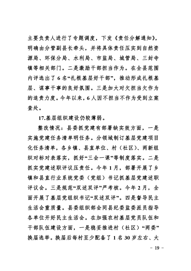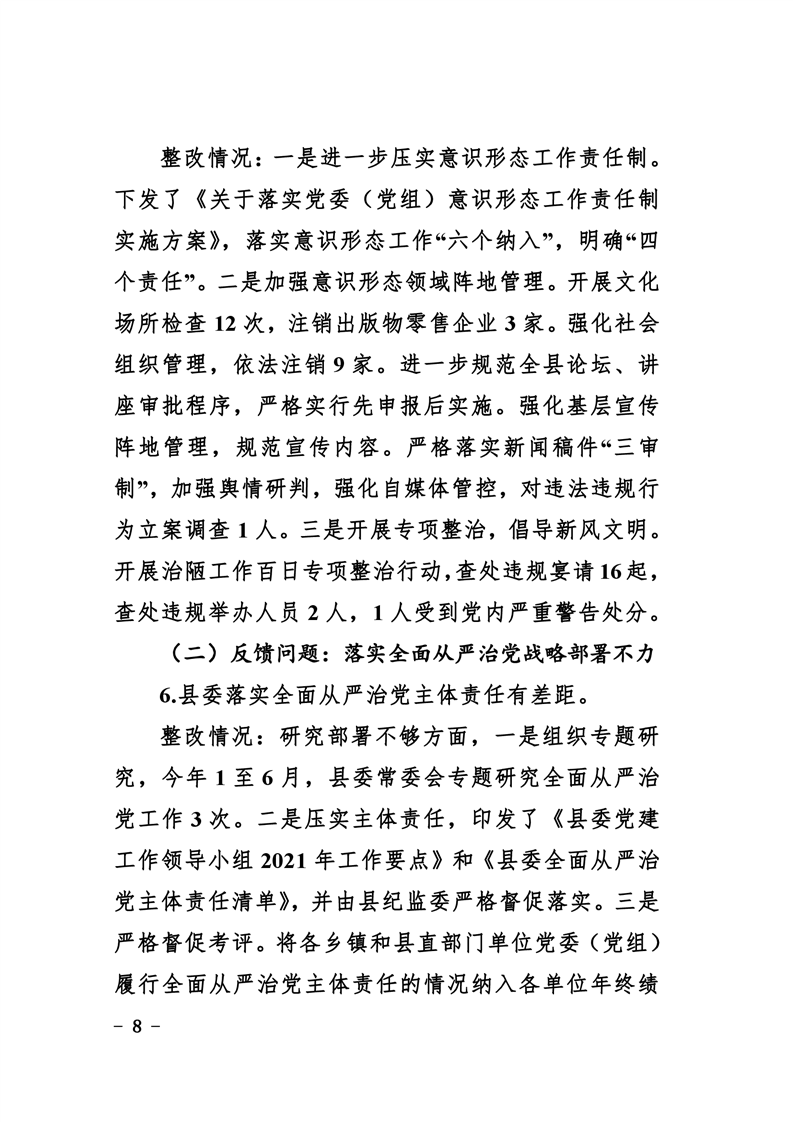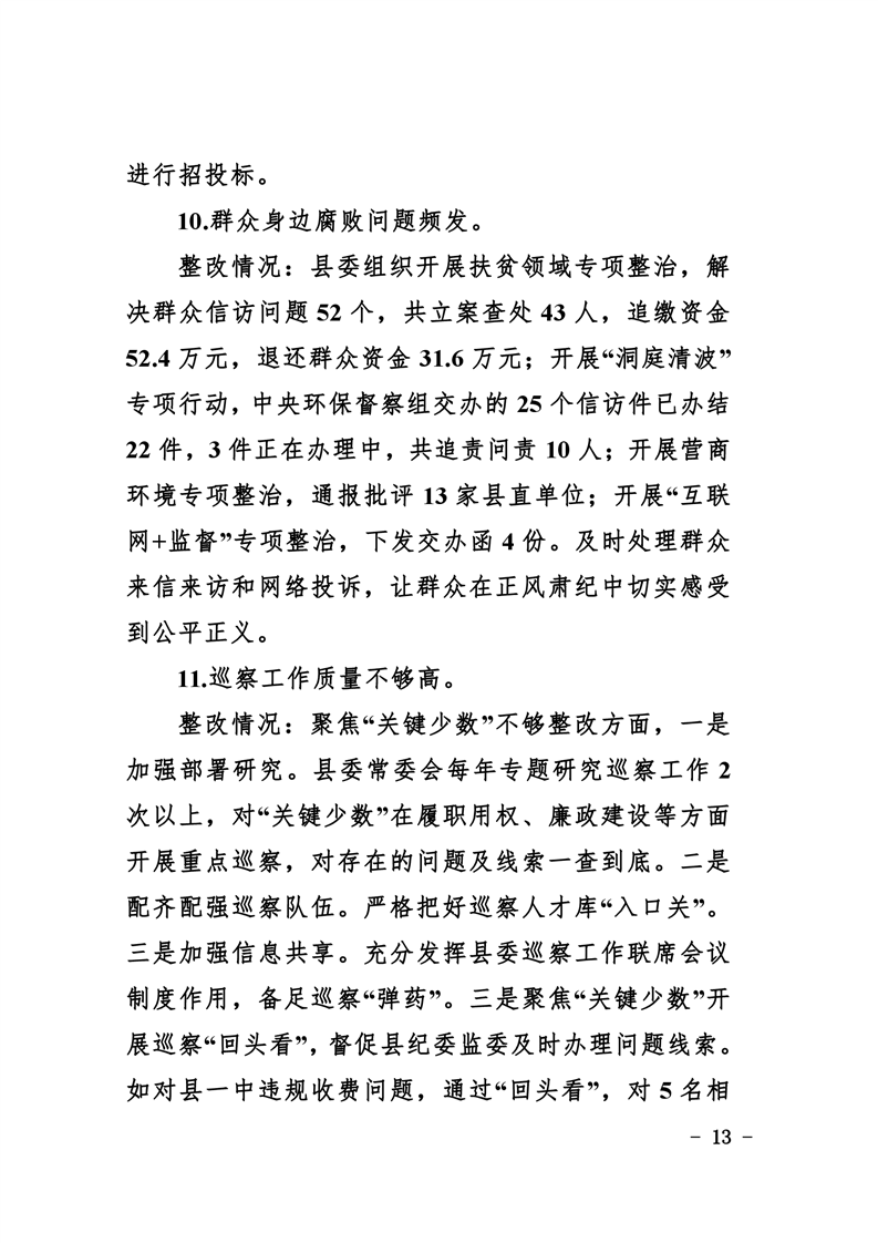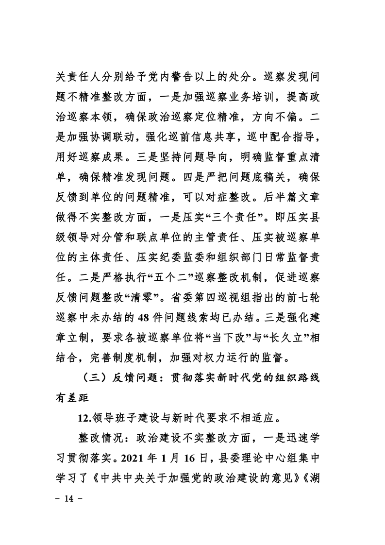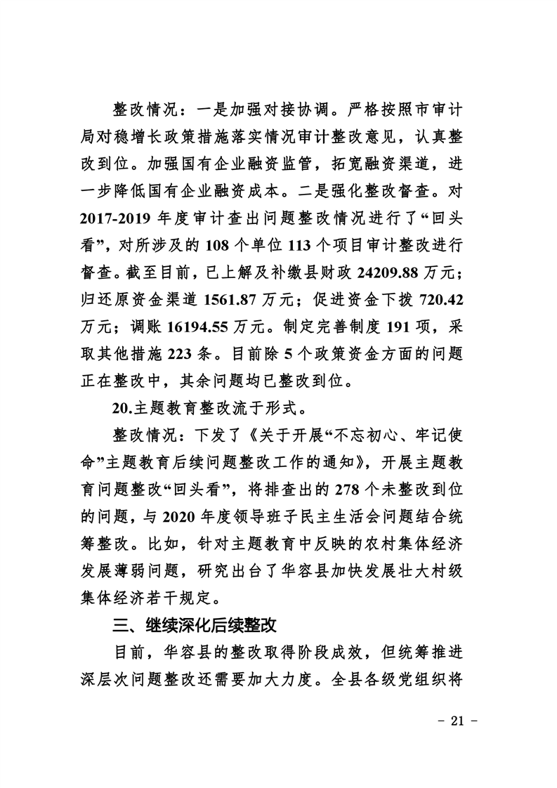 中共华容县委关于巡视整改进展情况的通报