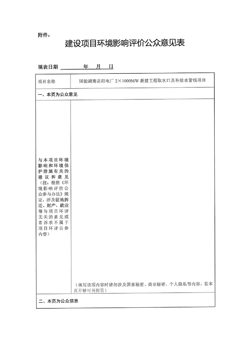 国能湖南岳阳电厂2×1000MW新建工程取水口及补给水管线项目环境影响评价第一次信息公告.doc