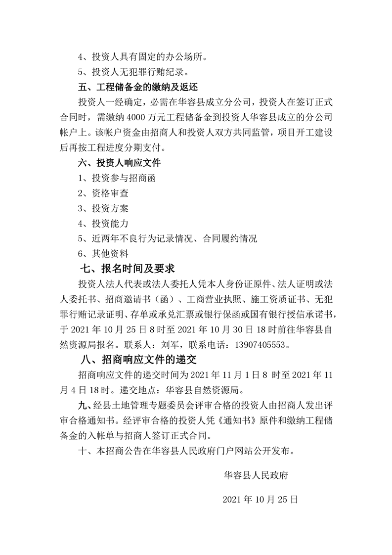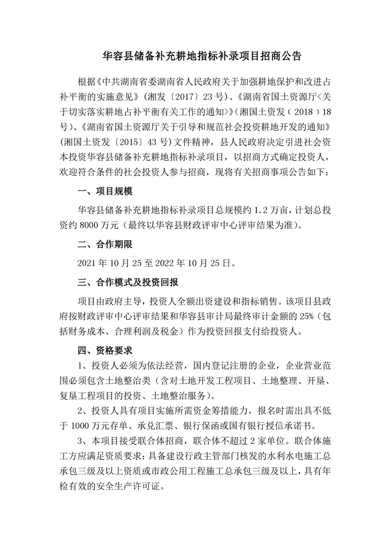 华容县储备补充耕地指标补录项目招商公告