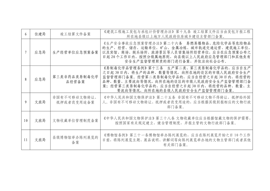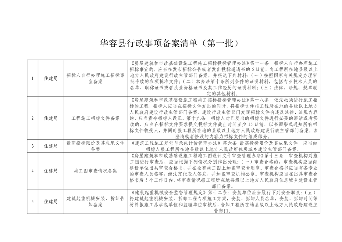 华容县行政事项备案清单(第一批)
