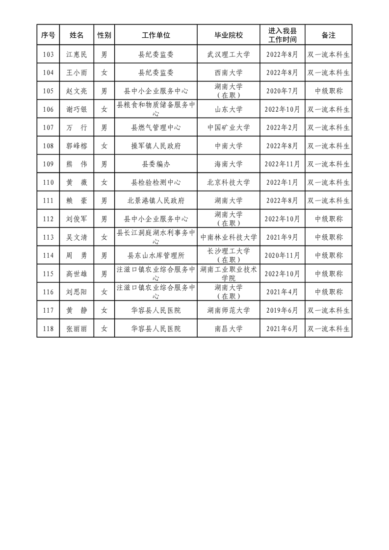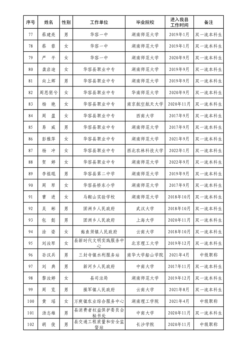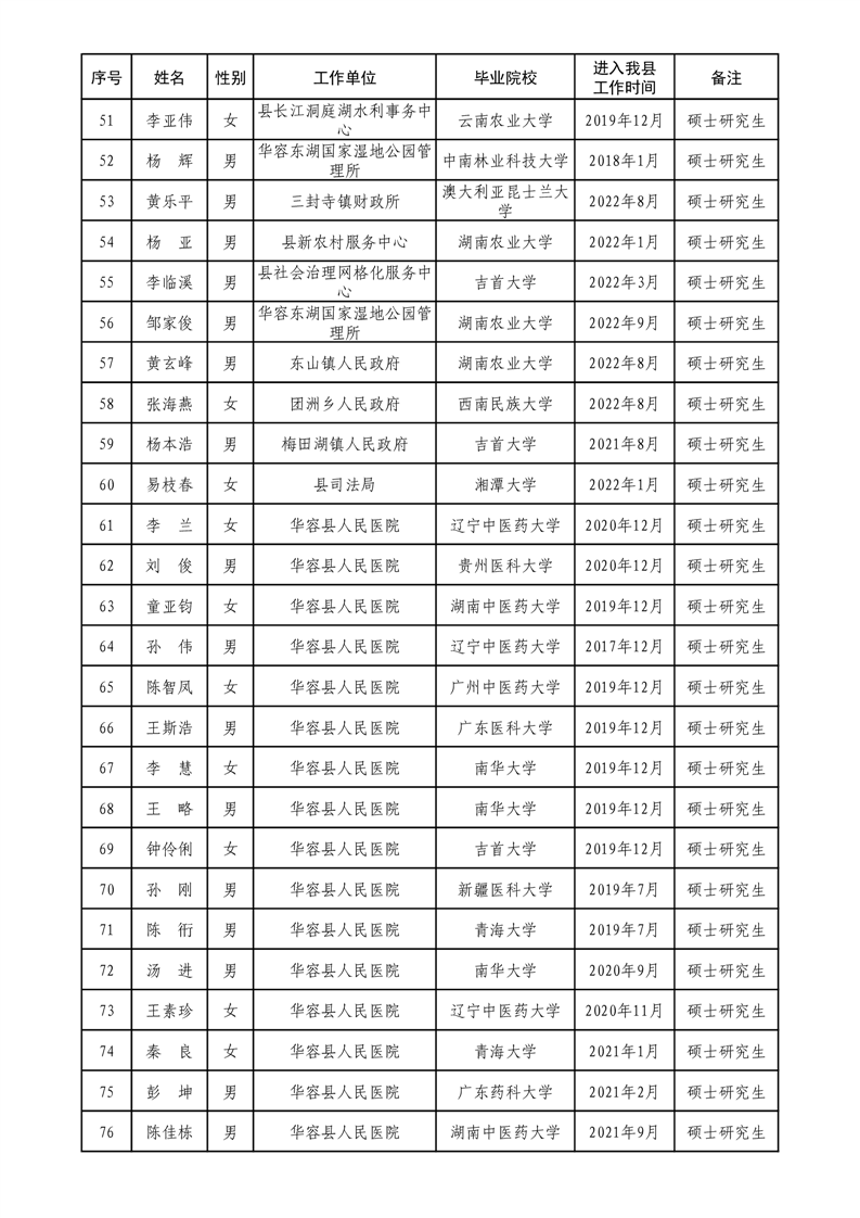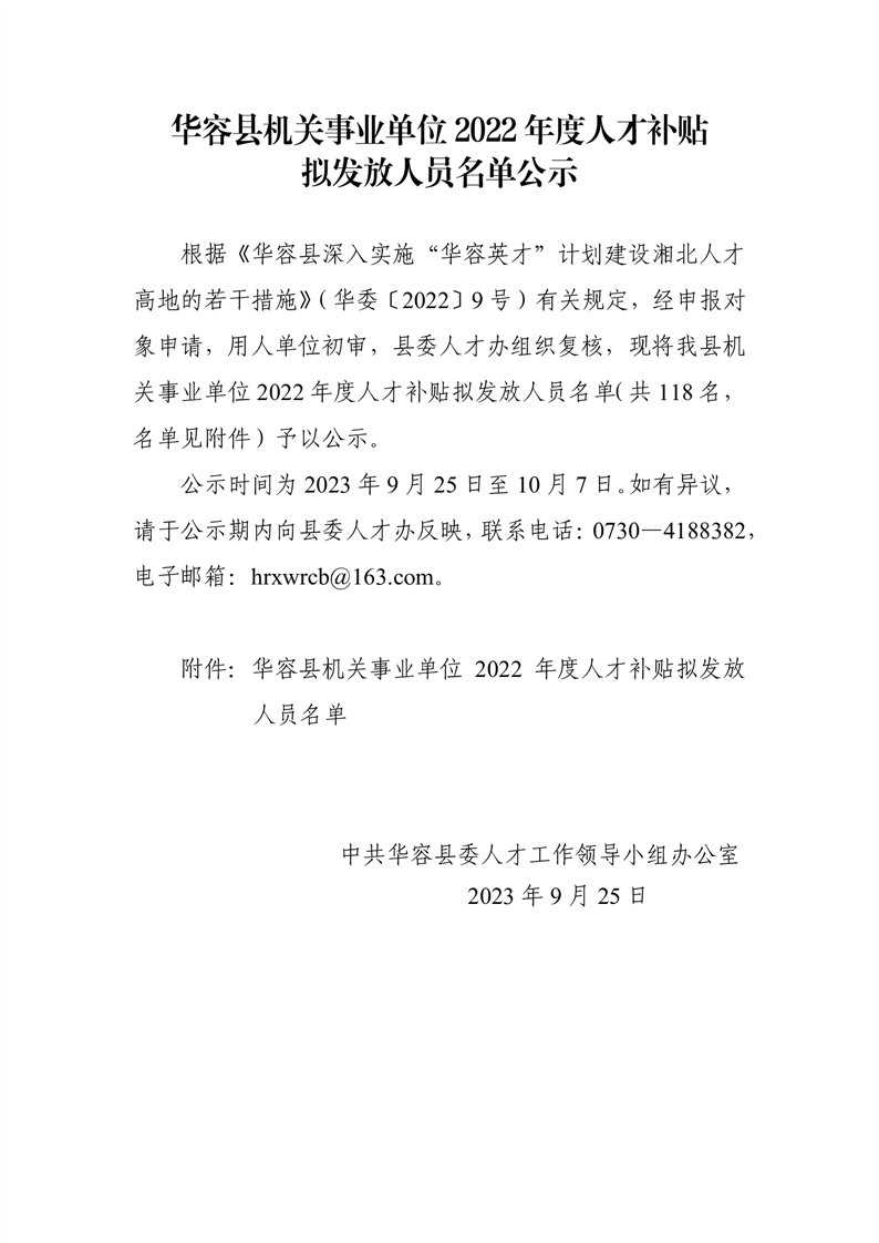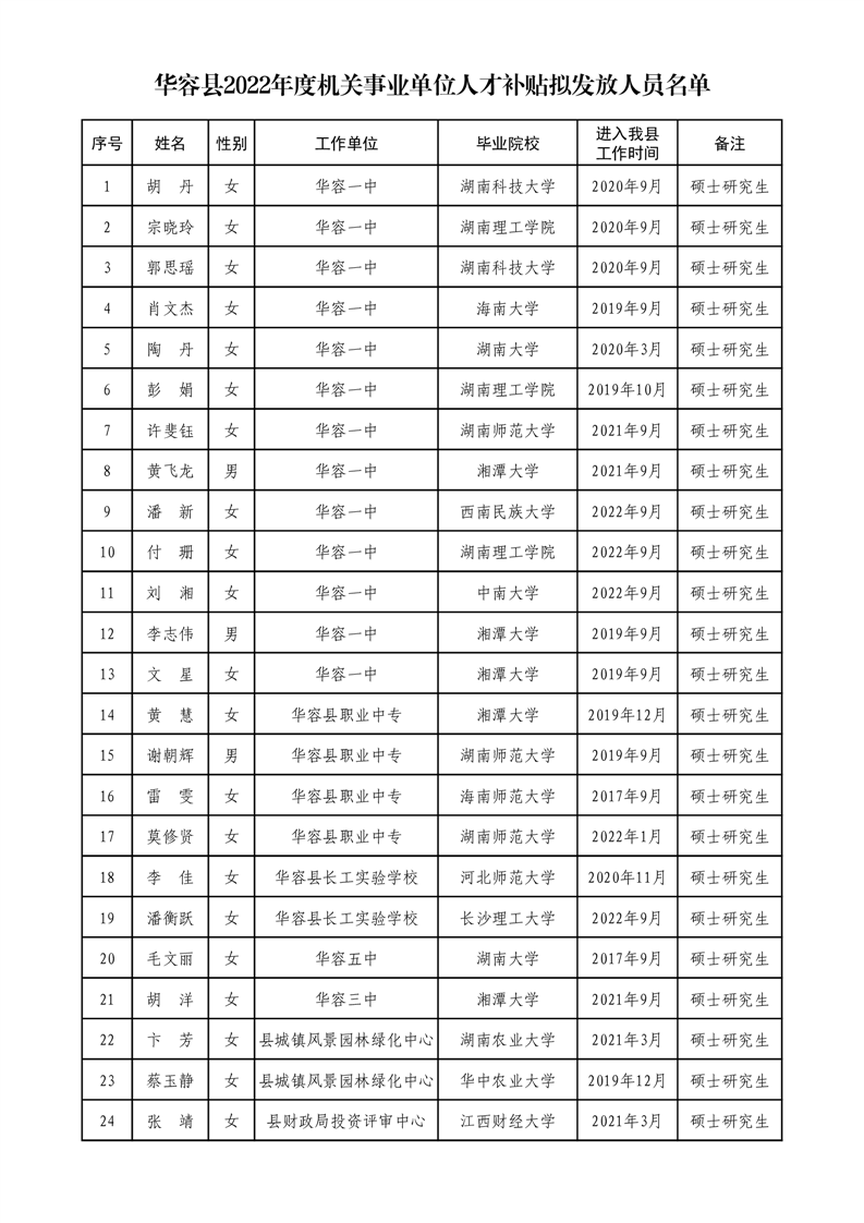 华容县2022年度人才补贴拟发放人员名单公示