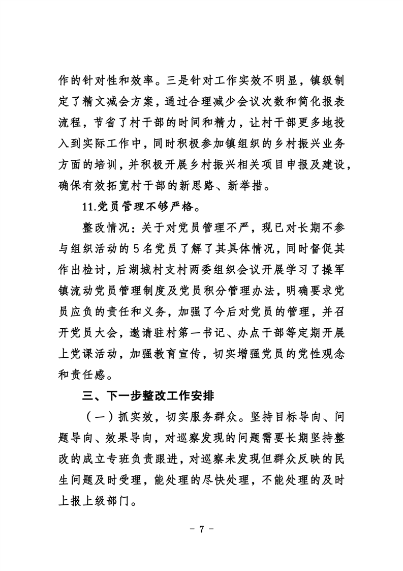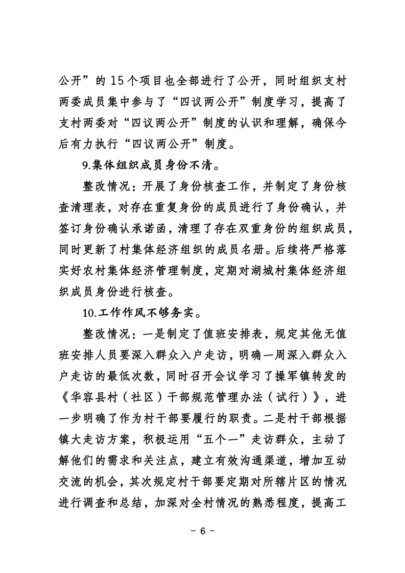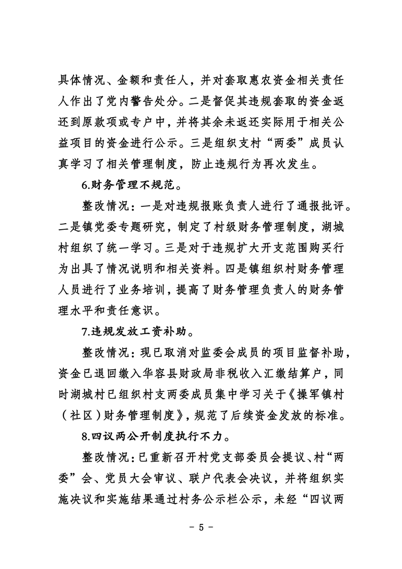 中共华容县操军镇委员会关于湖城村巡察整改进展情况的通报