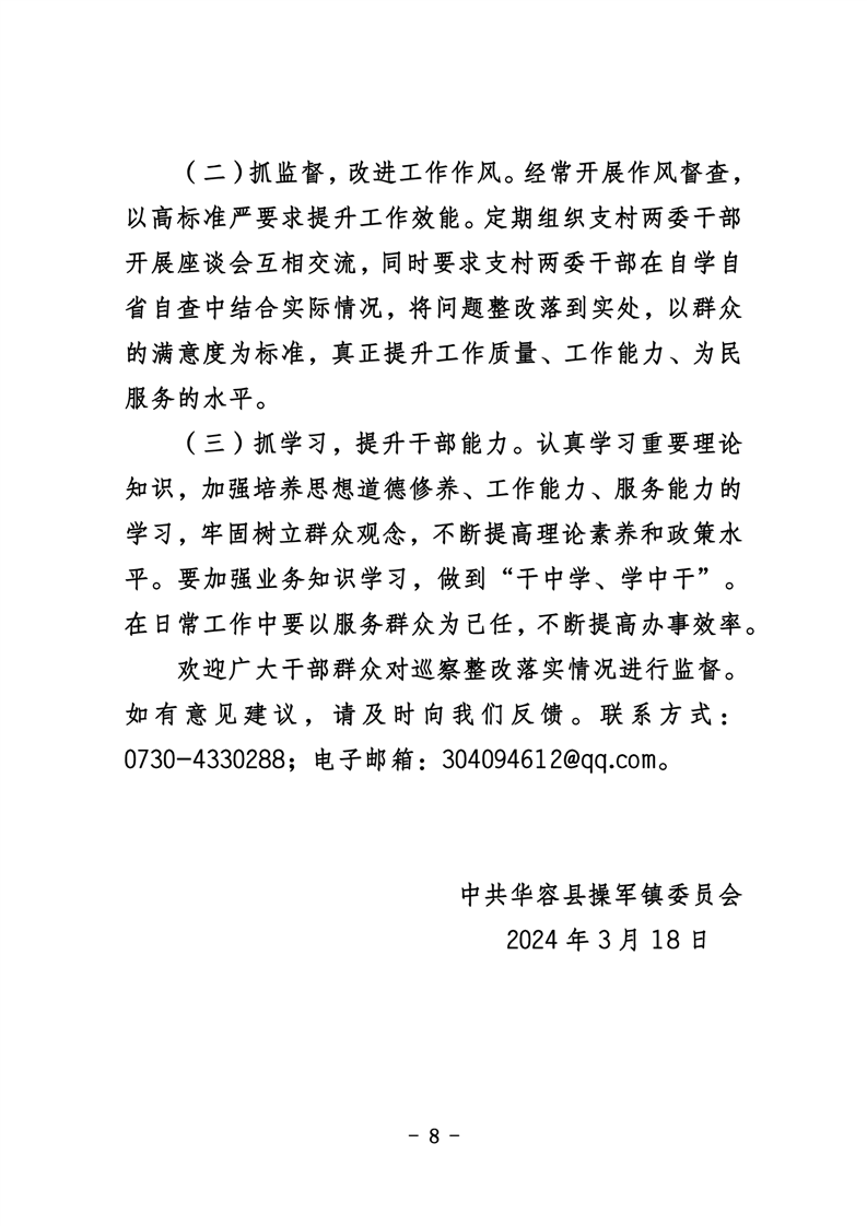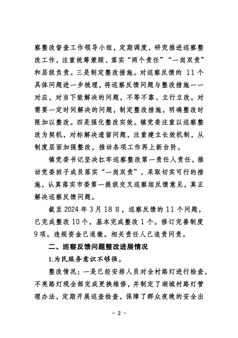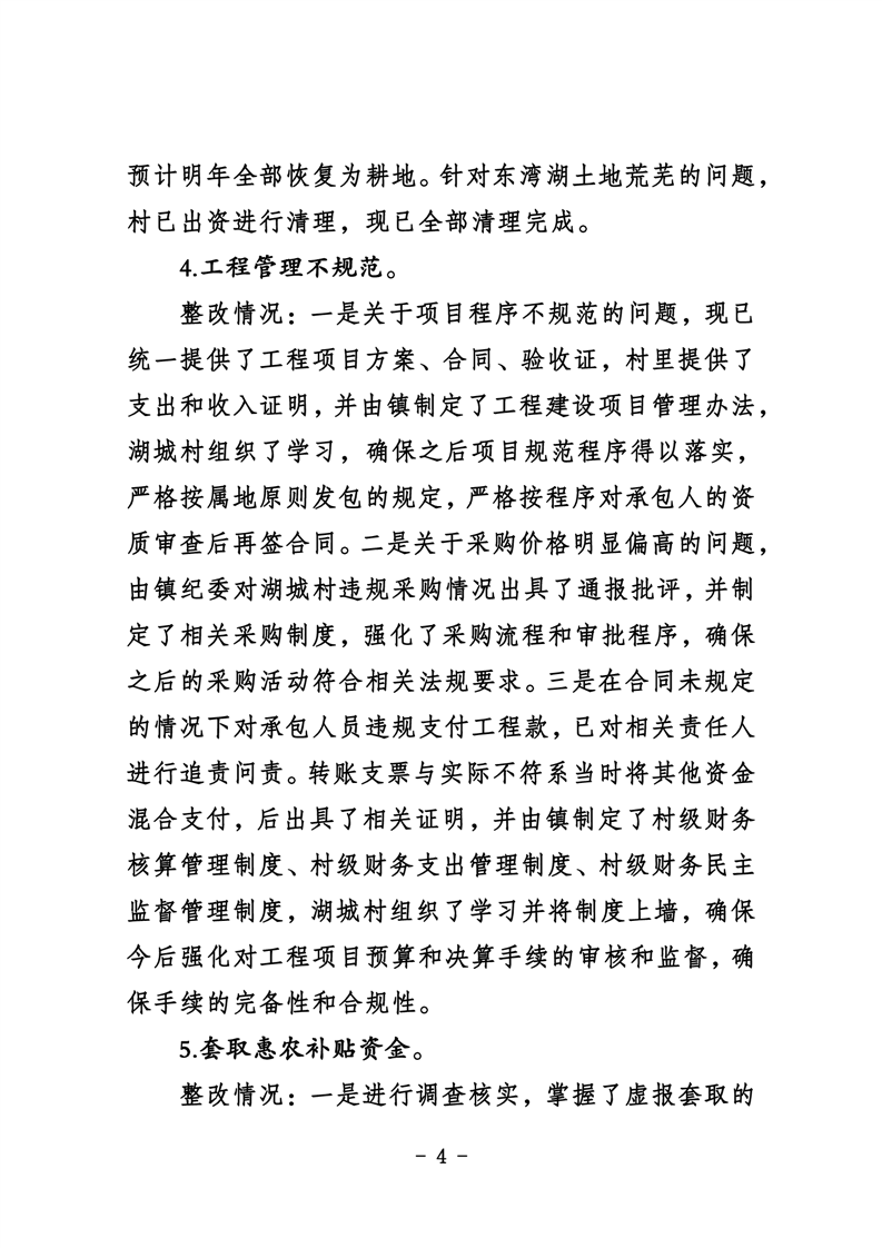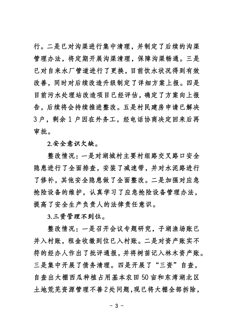 中共华容县操军镇委员会关于湖城村巡察整改进展情况的通报