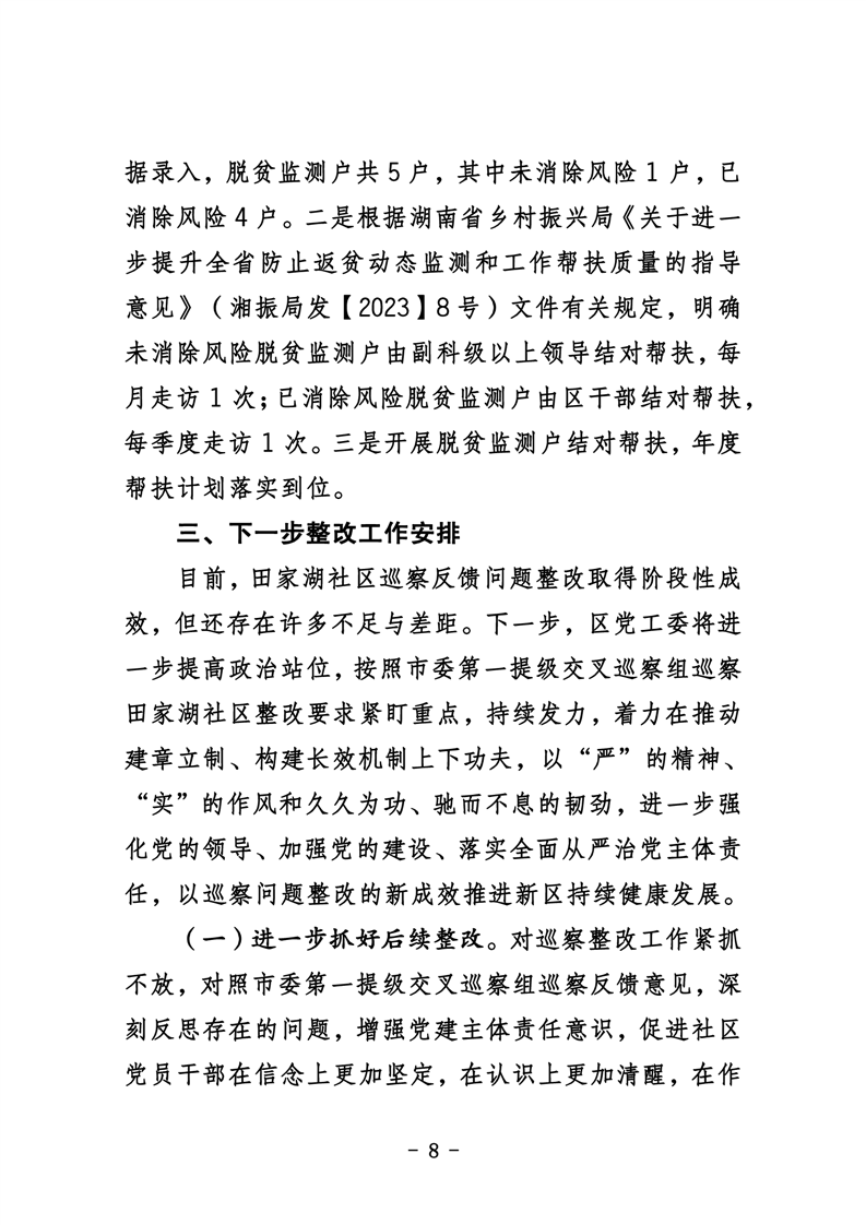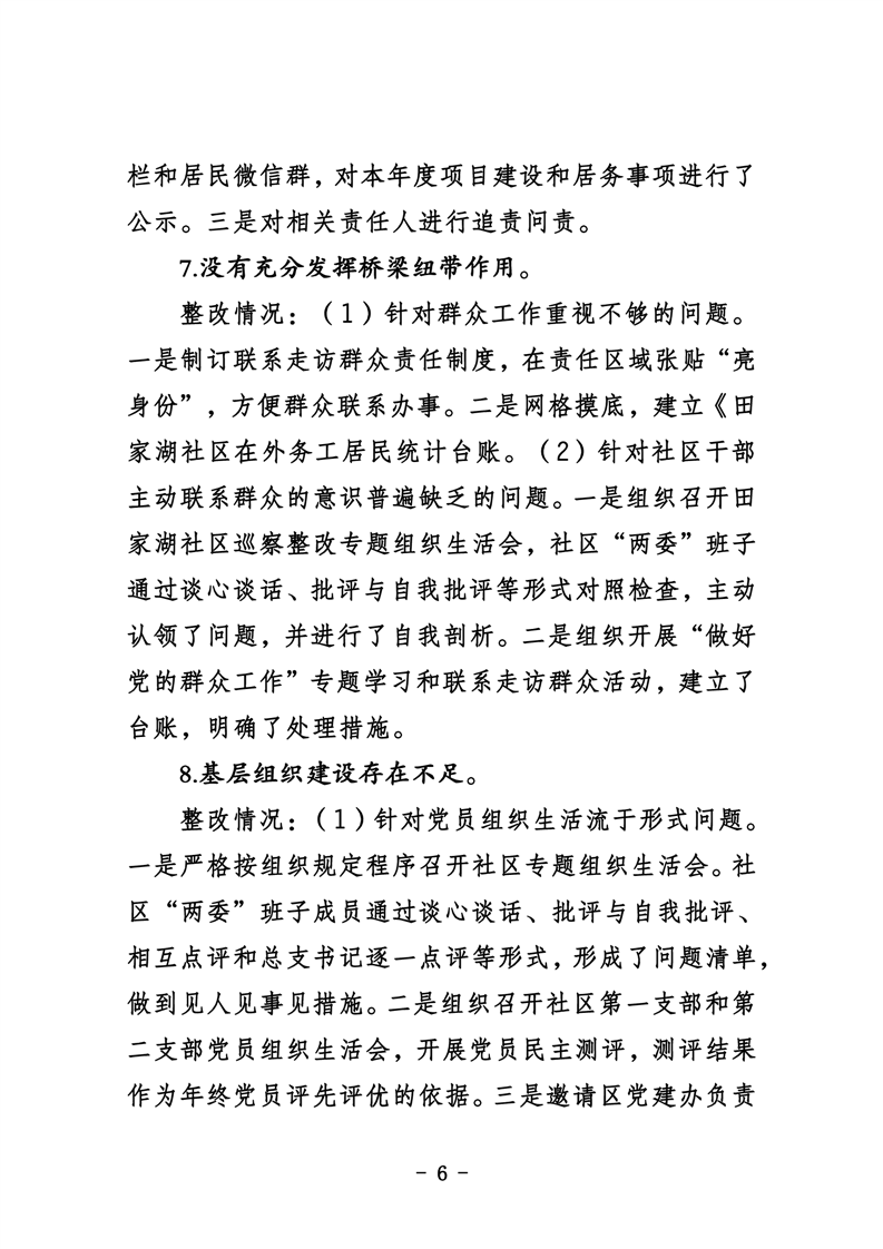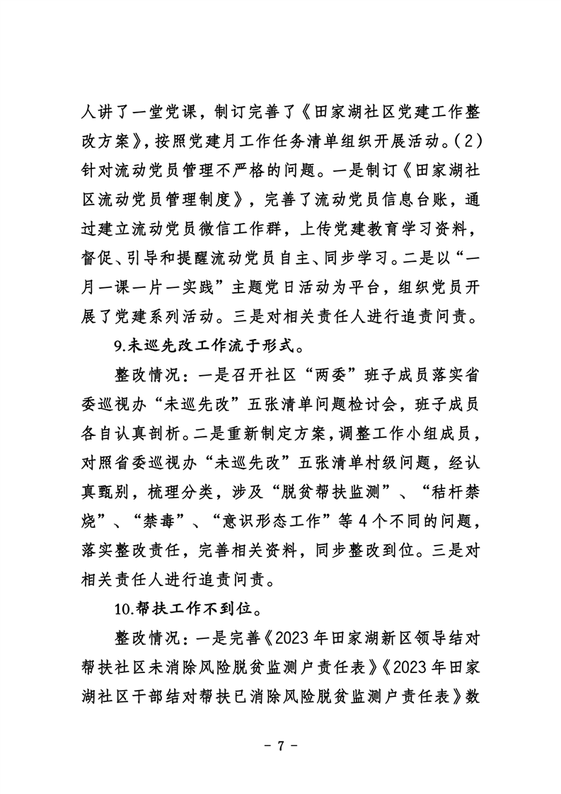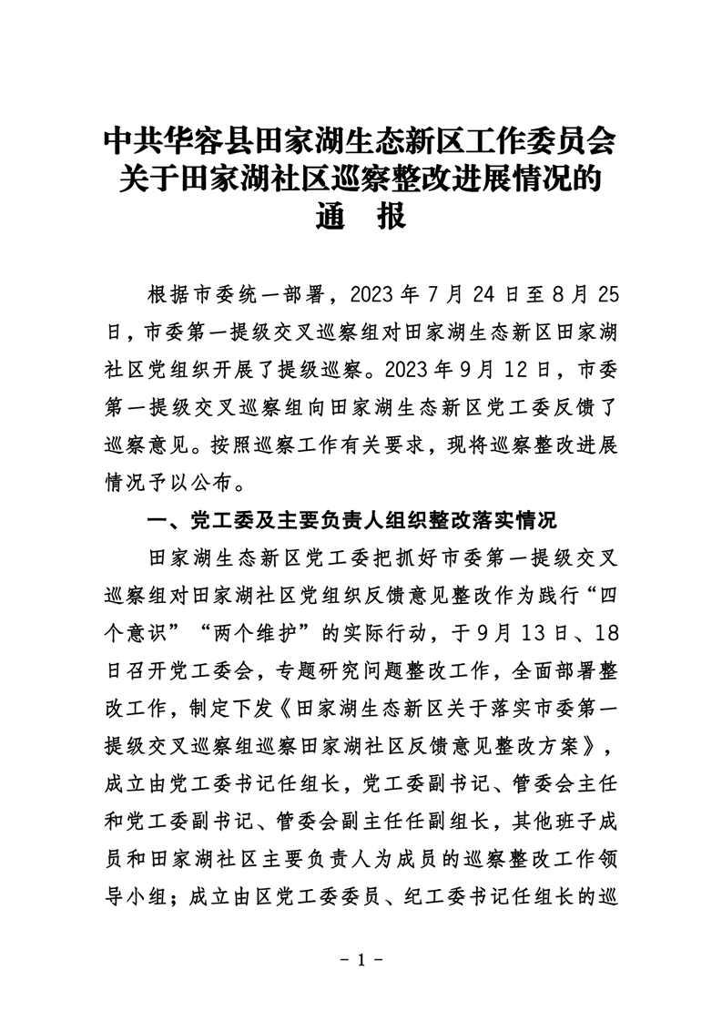 中共华容县田家湖生态新区工作委员会关于田家湖社区巡察整改进展情况的通报