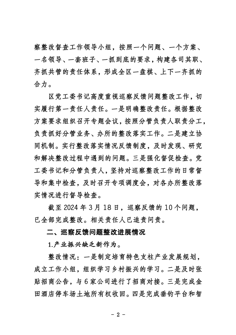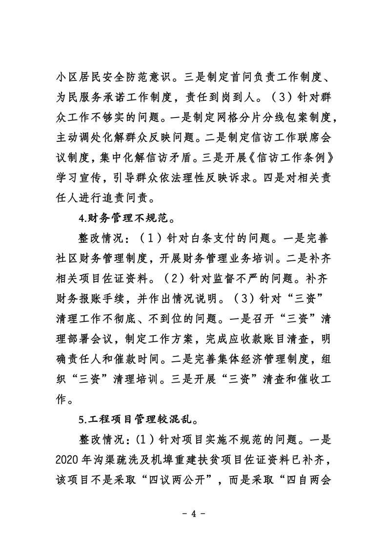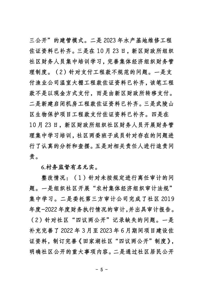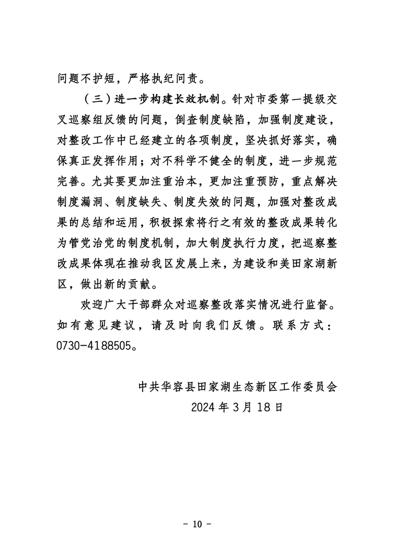 中共华容县田家湖生态新区工作委员会关于田家湖社区巡察整改进展情况的通报
