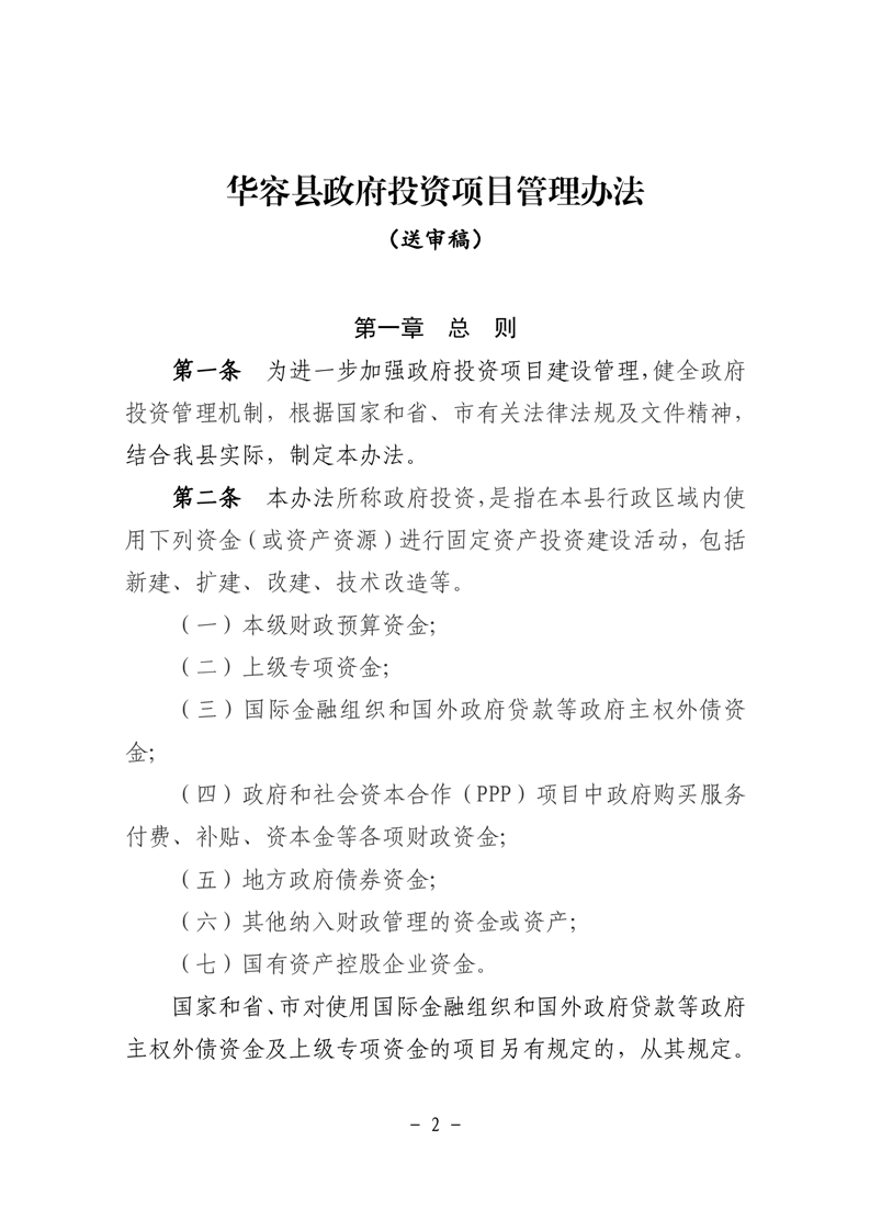 华容县政府关于征求《华容县政府投资项目管理办法(修订版)》(征求意见稿)意见的函(2).doc