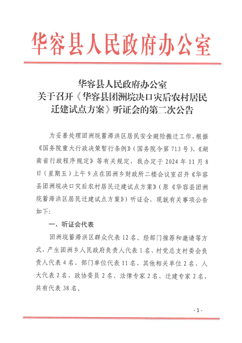 关于召开《华容县团洲垸决口灾后农村居民迁建试点方案》听证会的第二次公告