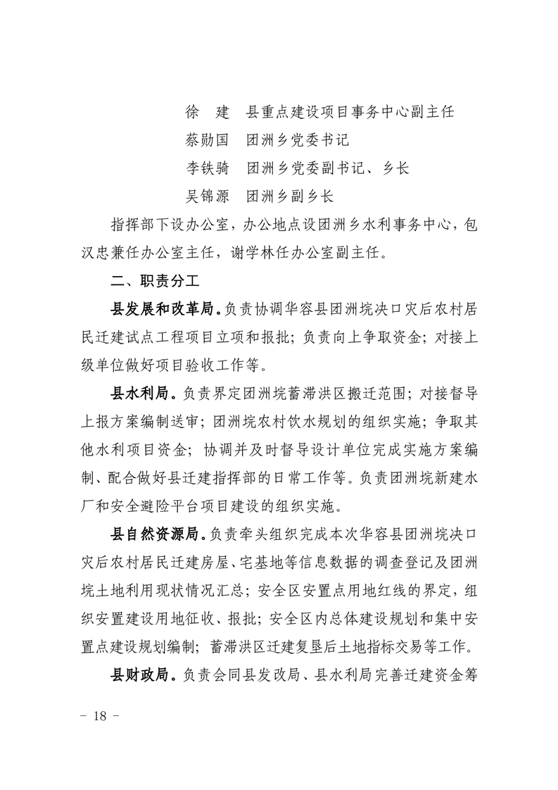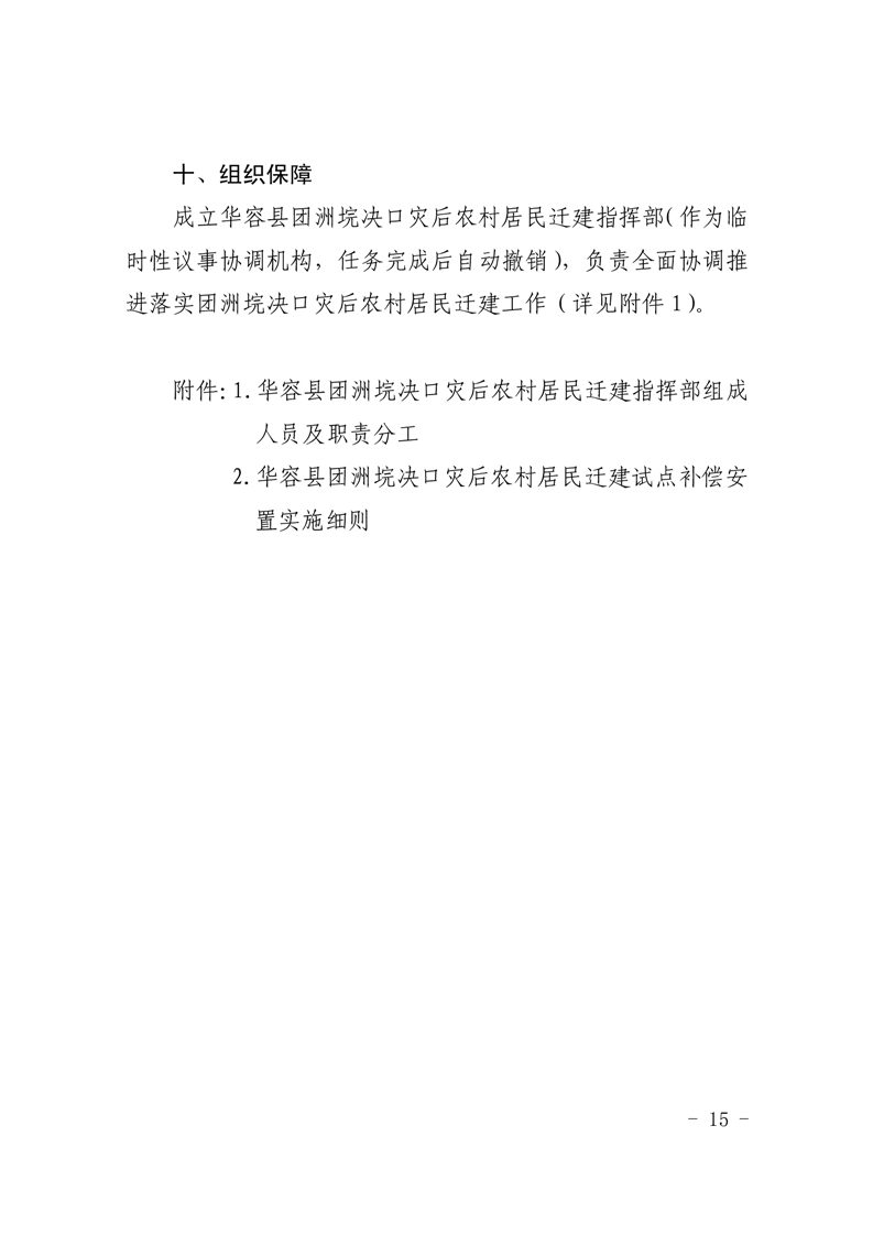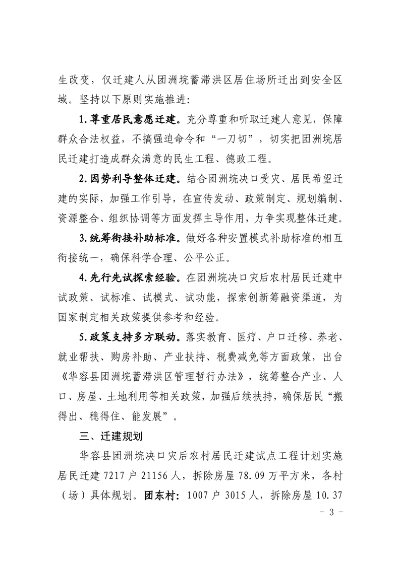 关于印发《华容县团洲垸决口灾后农村居民迁建试点方案》的通知