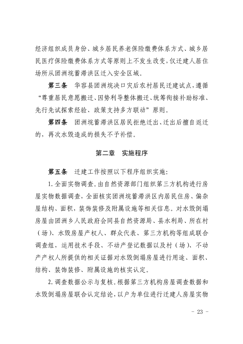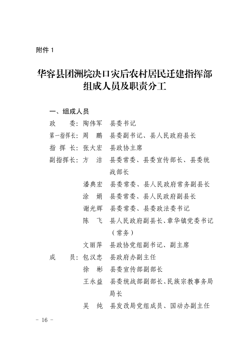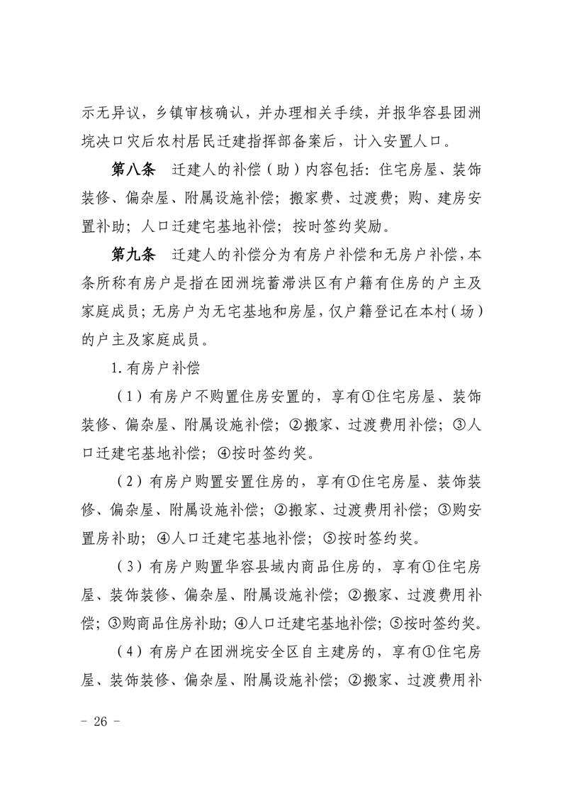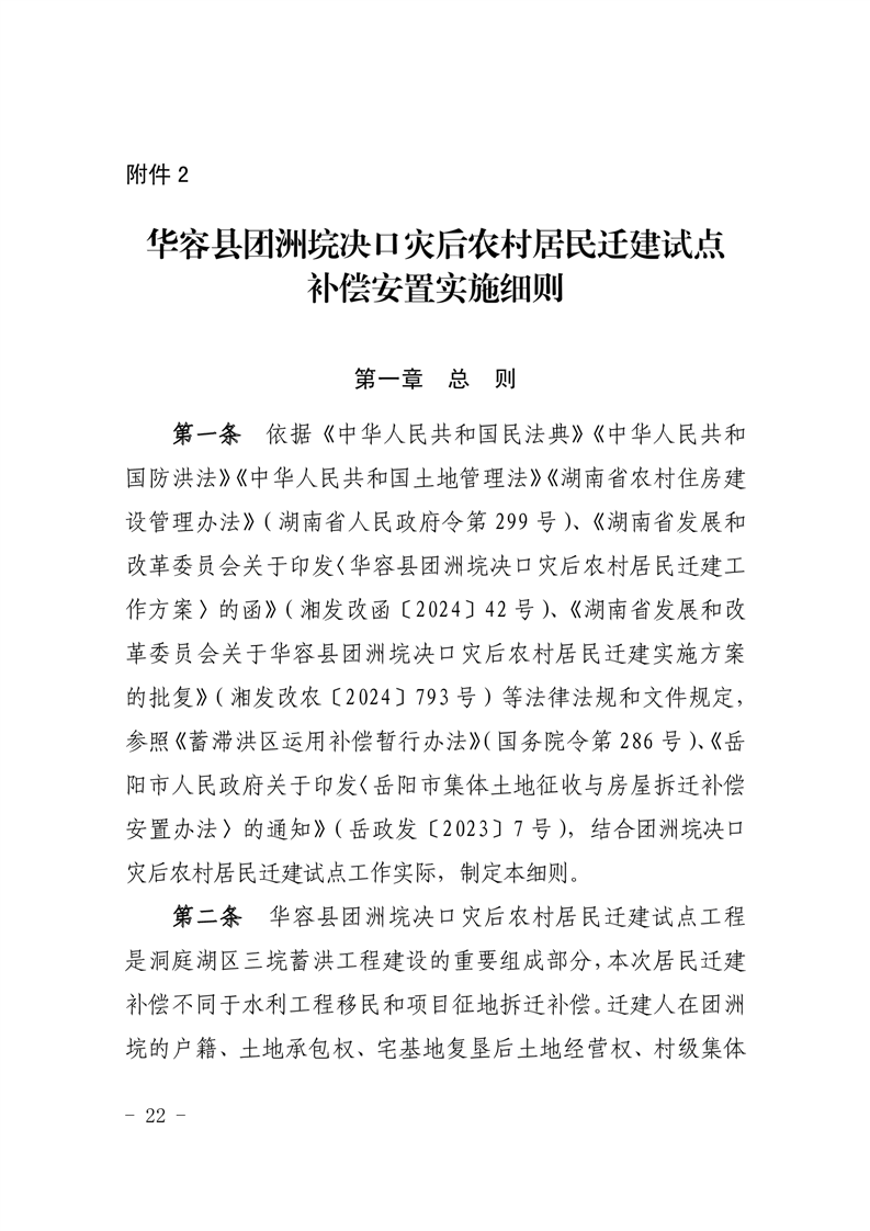 关于印发《华容县团洲垸决口灾后农村居民迁建试点方案》的通知