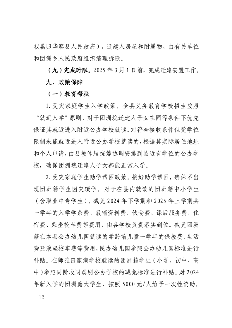 华容县人民政府关于华容县团洲垸决口灾后农村居民迁建的公告