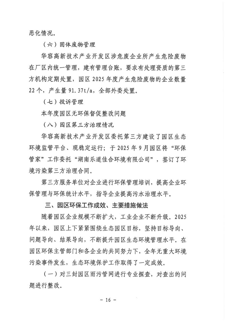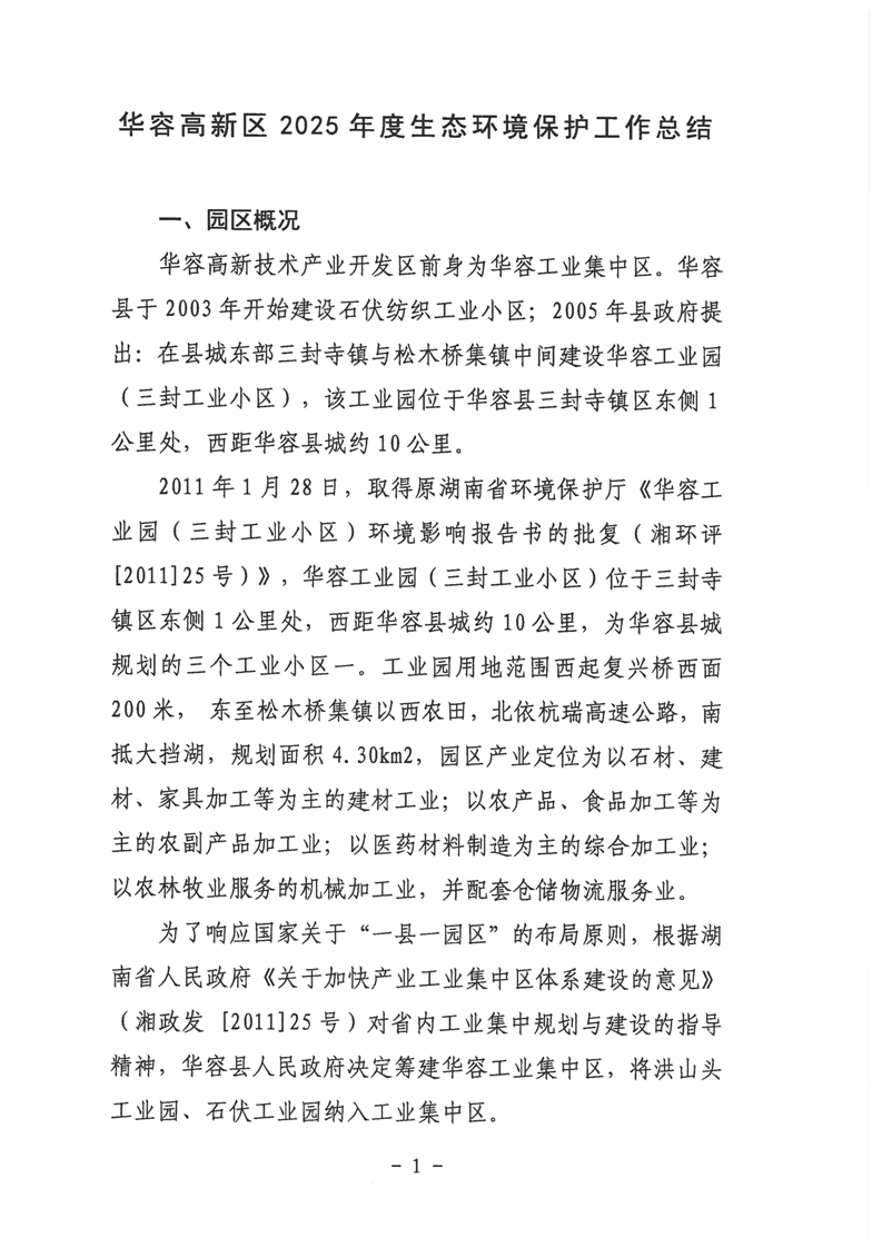 华容高新区2025年度生态环境保护工作总结