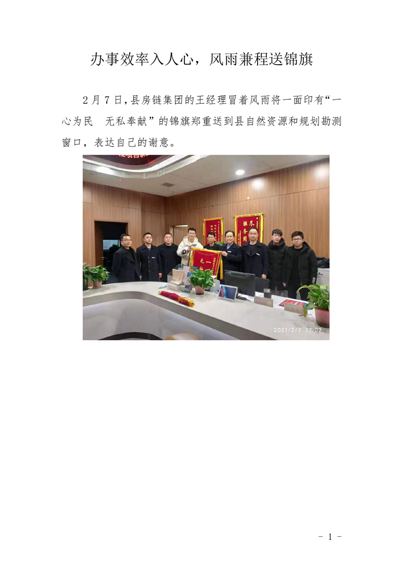 办事效率入人心,风雨兼程送锦旗