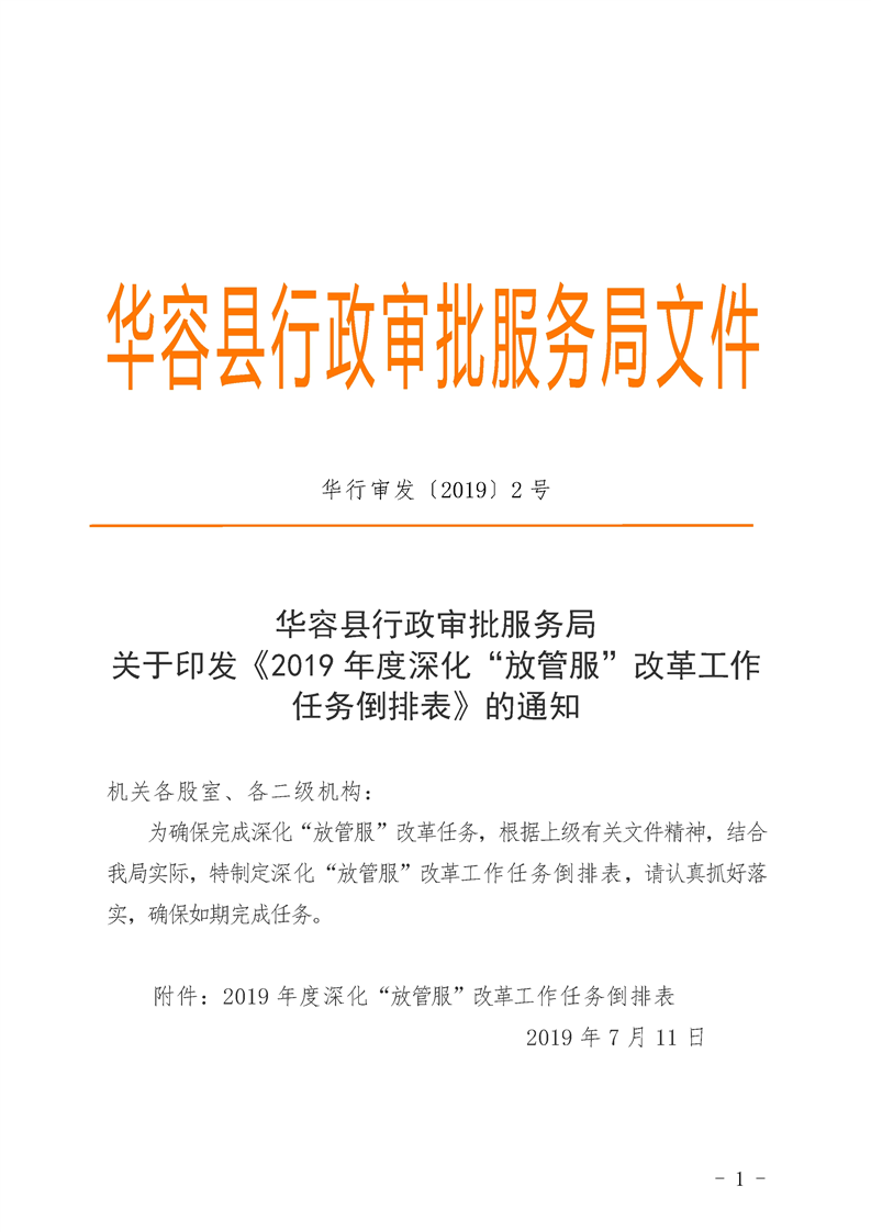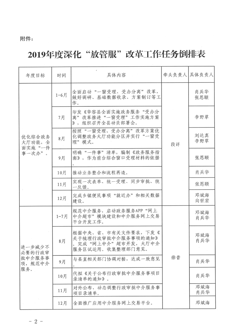 华容县行政审批服务局关于印发《2019年度深化“放管服”改革工作任务倒排表》的通知