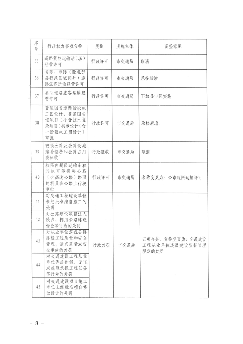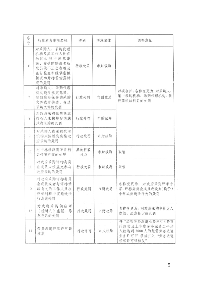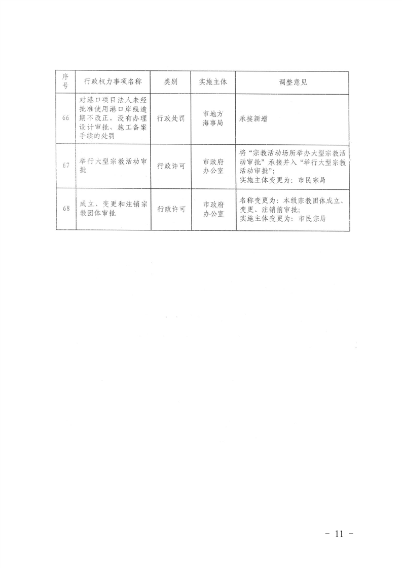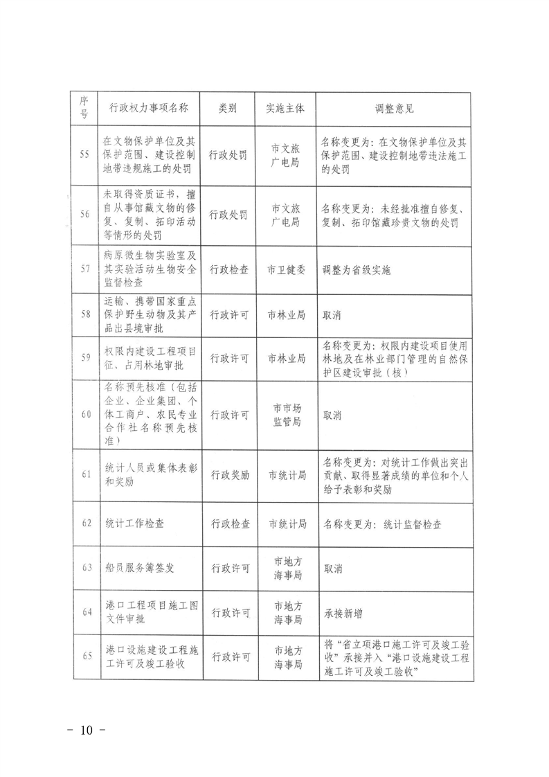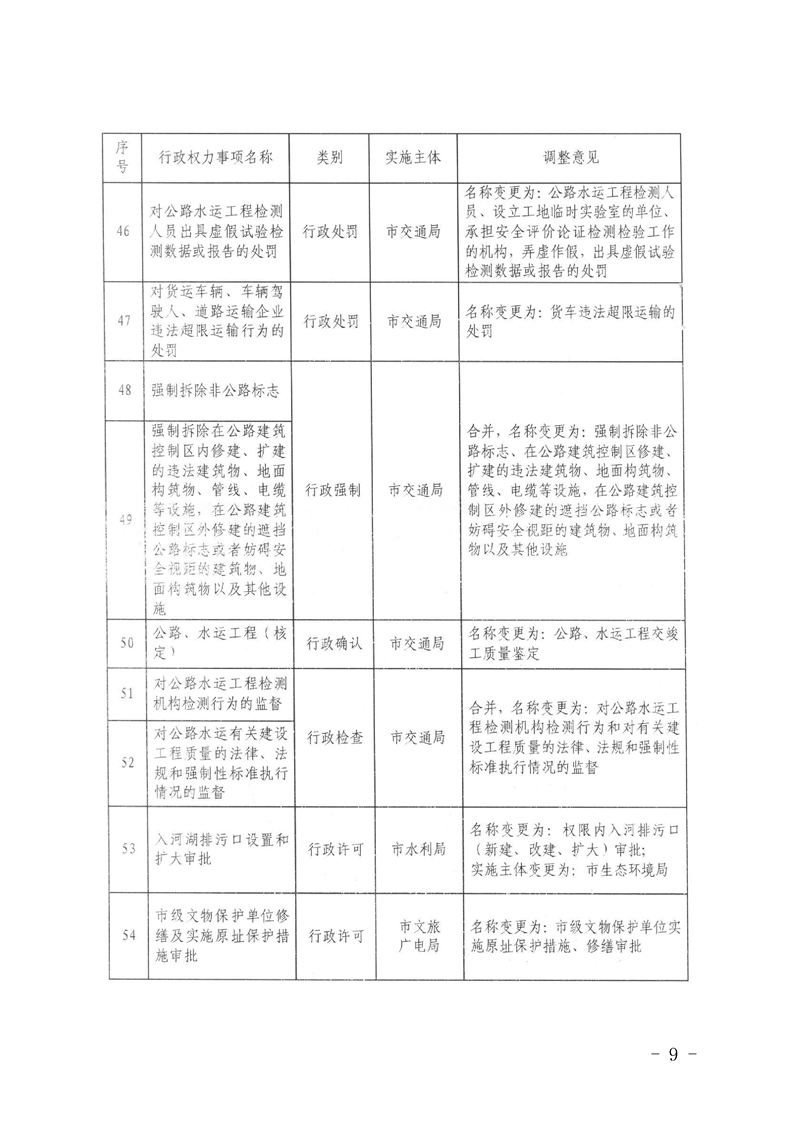 岳阳市人民政府关于 调整一批行政权力事项的通知