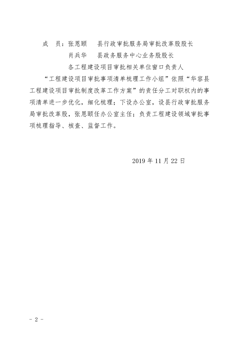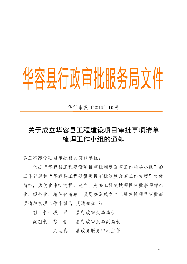 关于成立华容县工程建设项目审批事项清单 梳理工作小组的通知