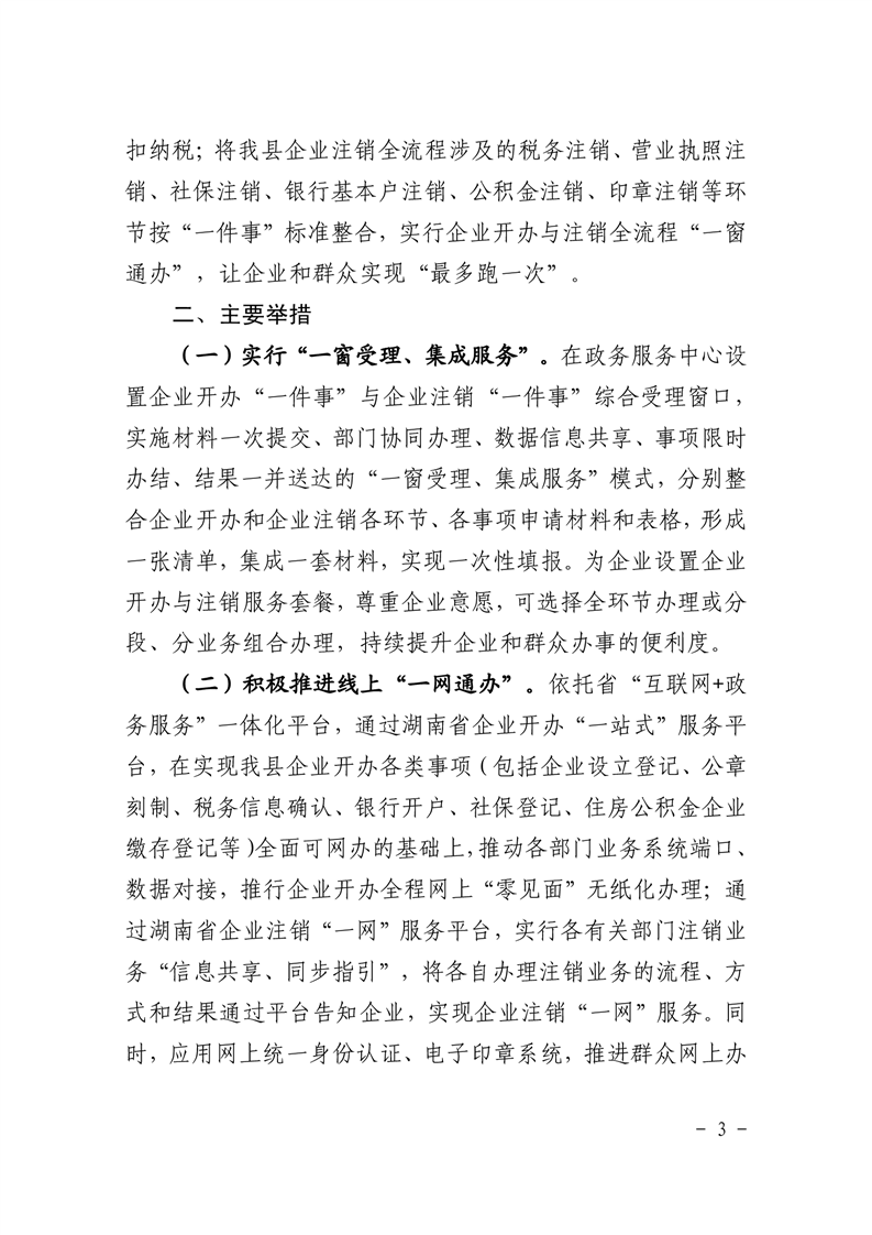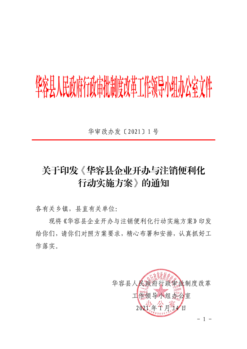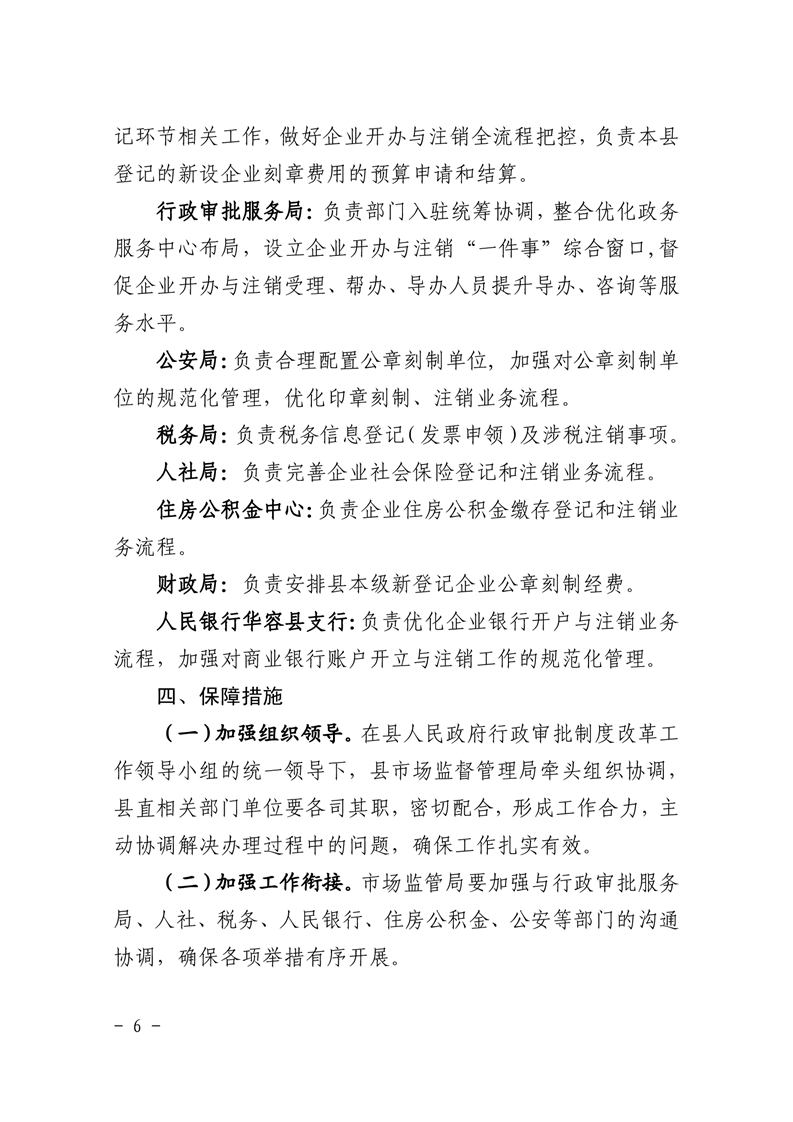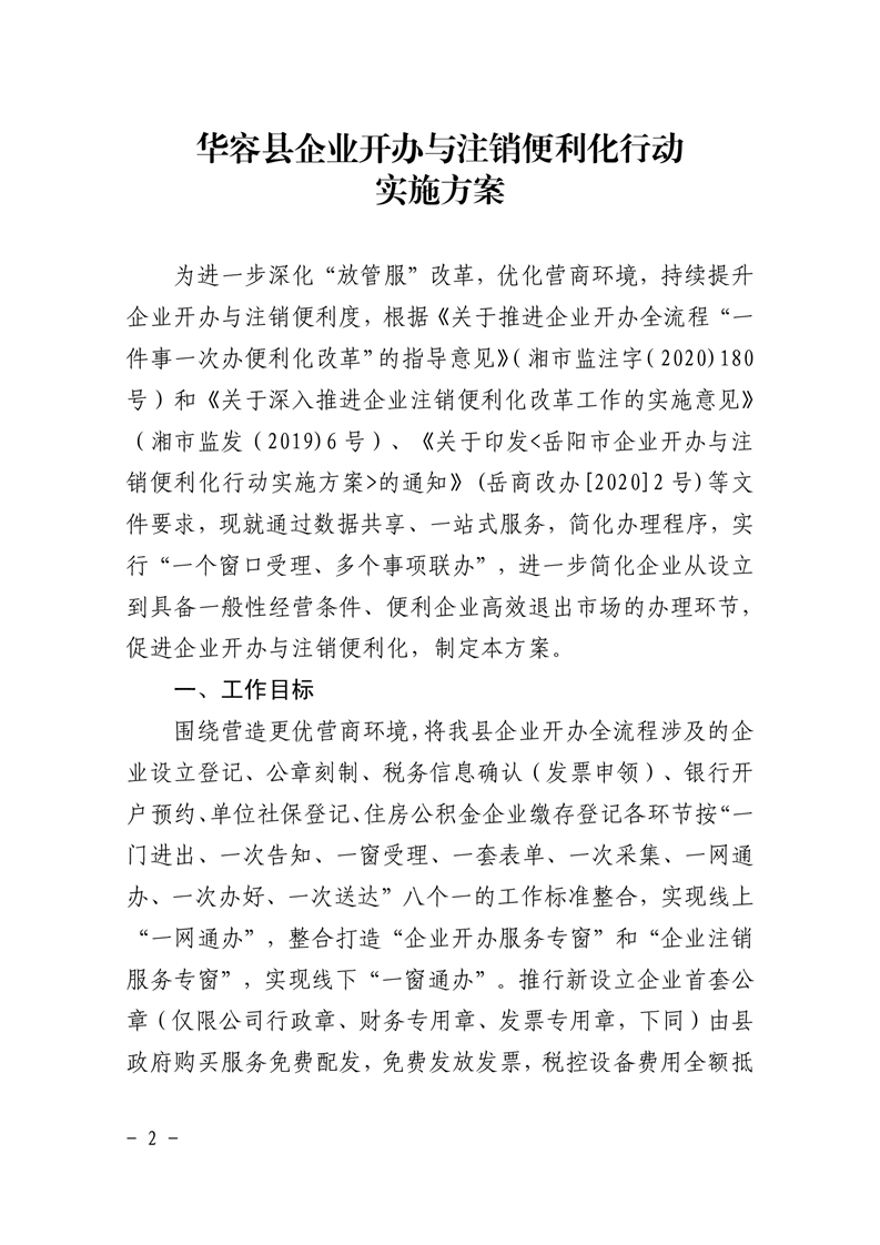 关于印发 《华容县企业开办与注销便利化行动实施方案》的通知