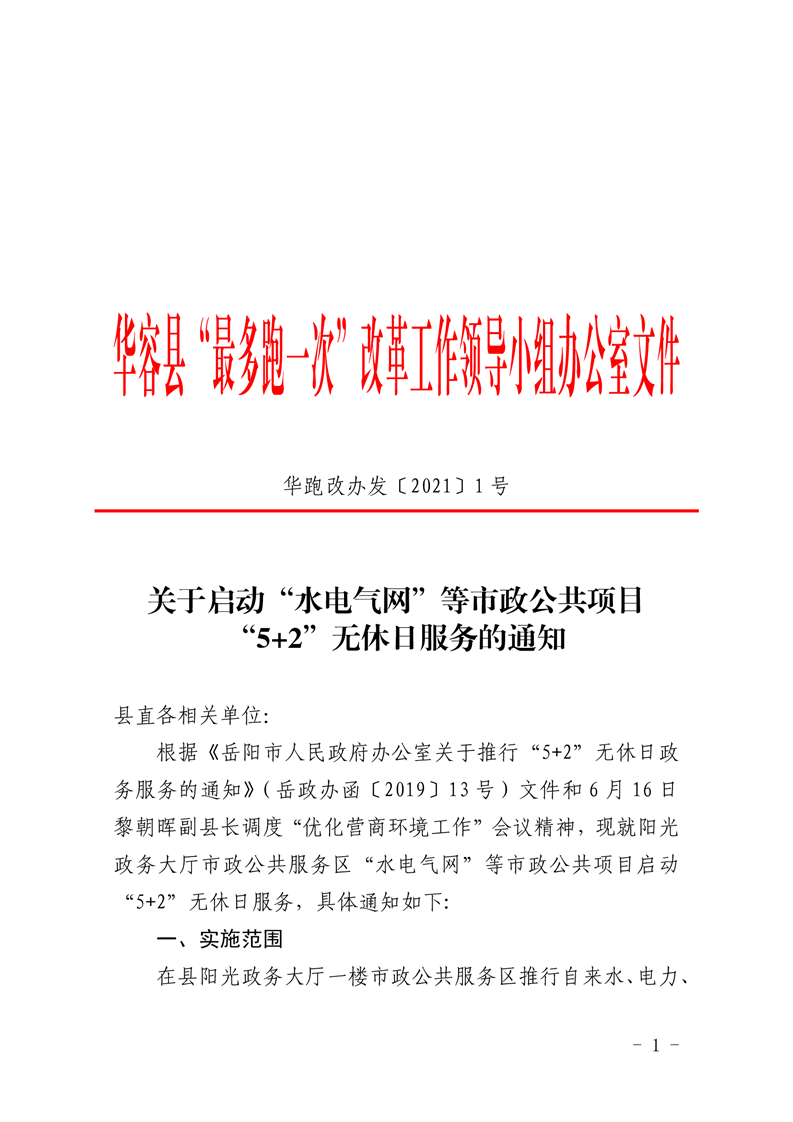 关于启动“水电气网”等市政公共项目 “5+2”无休日服务的通知