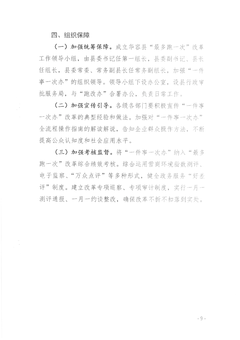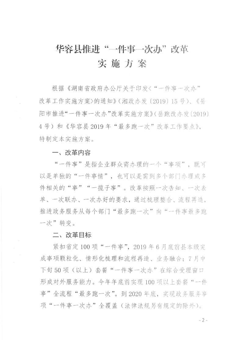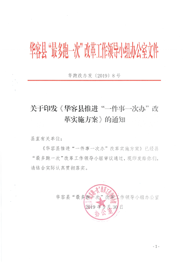 关于印发《华容县推进“一件事一次办”改革实施方案》的通知